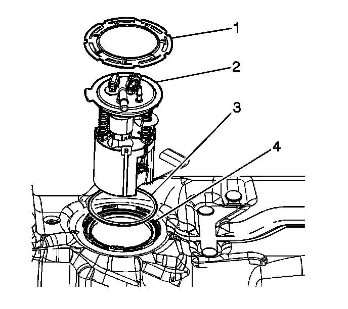3. Remove the fuel sender assembly (2) and the seal (3). Discard the seal.
