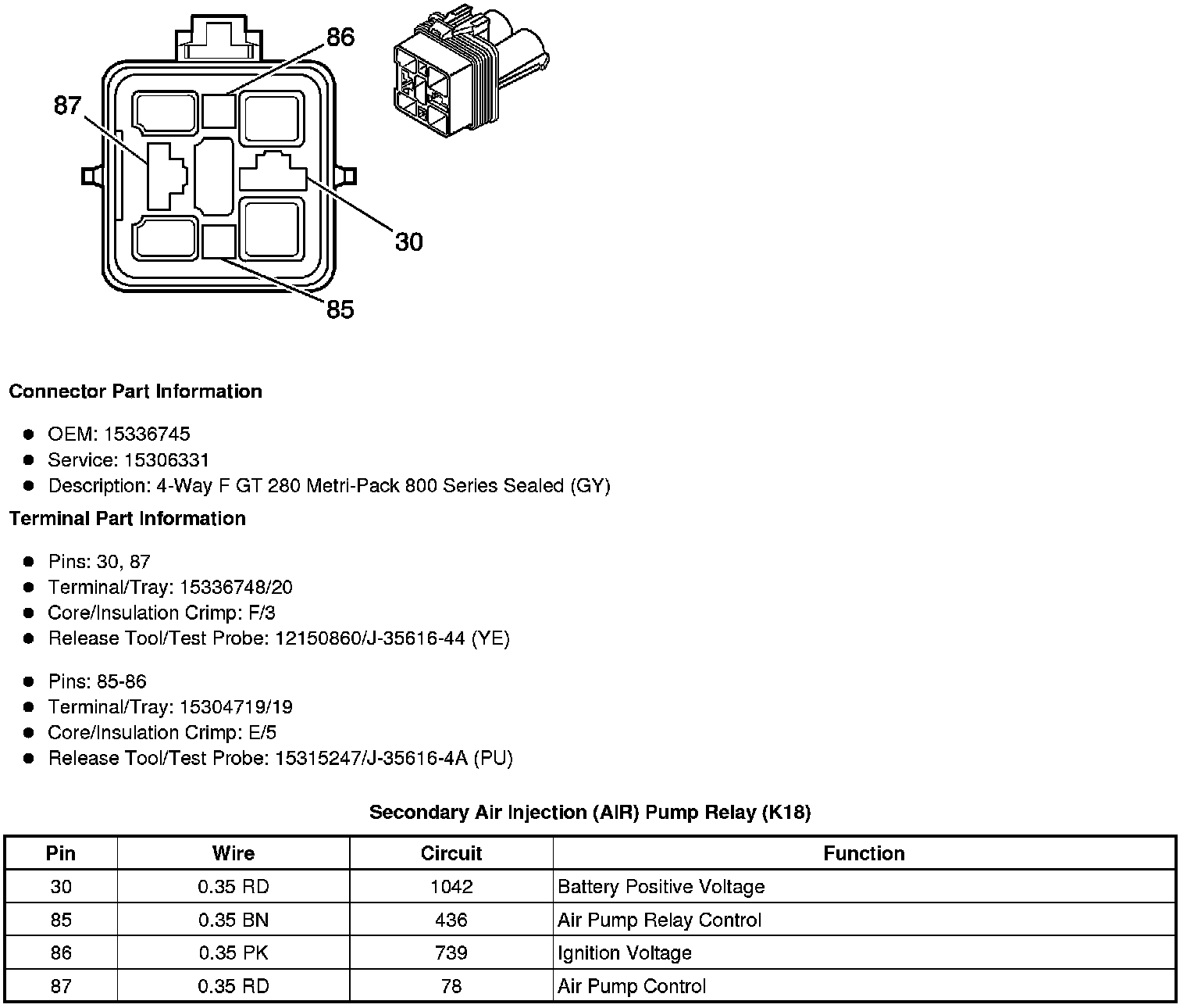 Secondary Air Injection (AIR) Pump Relay (K18)