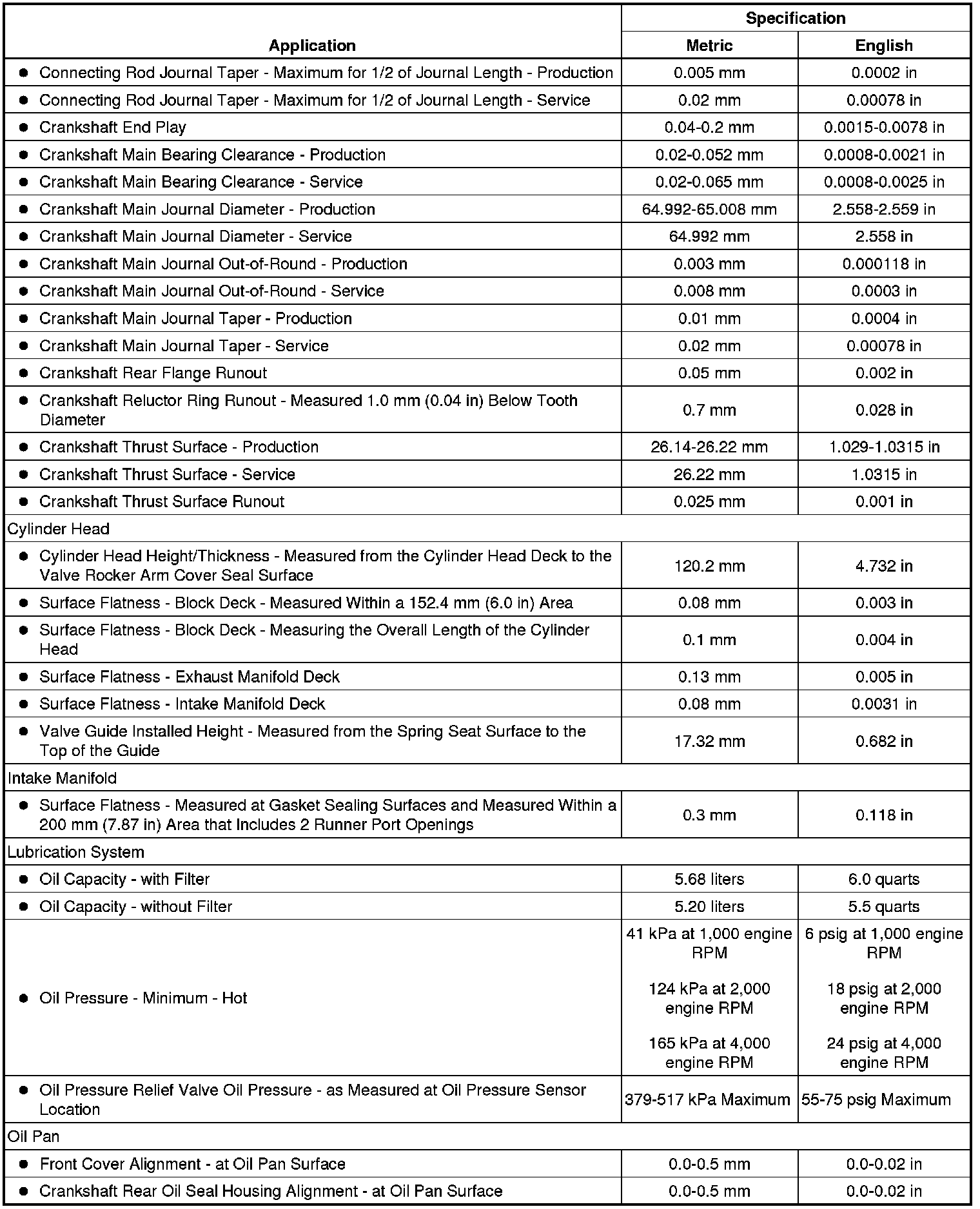 Engine Mechanical Specifications (6.0L)