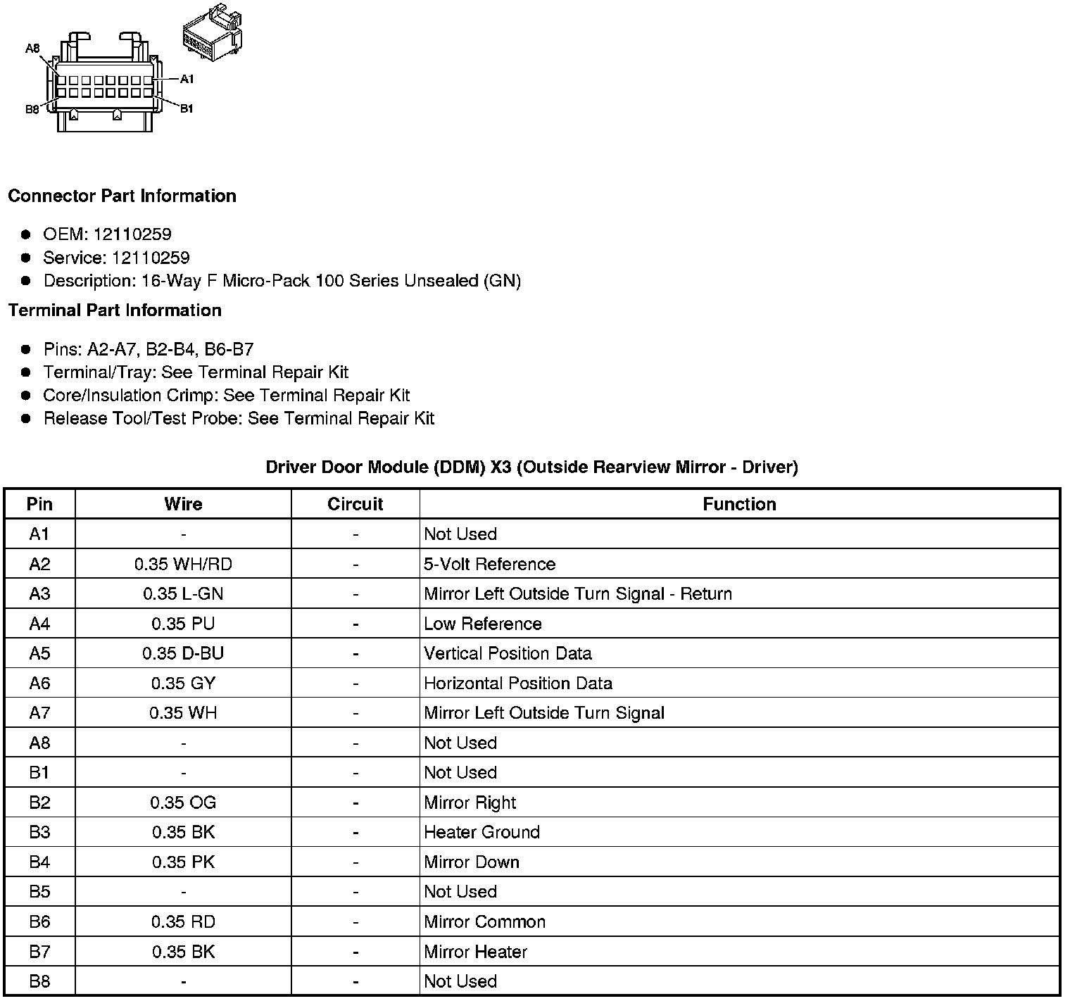 Driver Door Module (DDM) X3 (Outside Rearview Mirror - Driver)