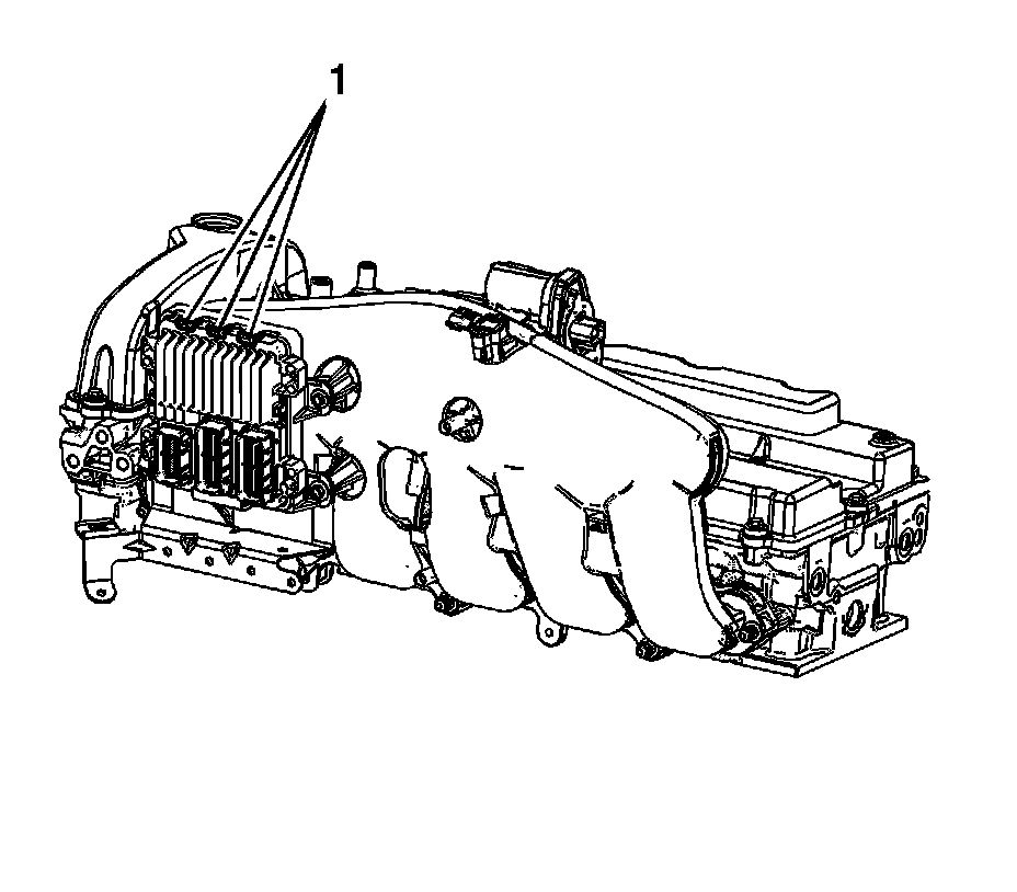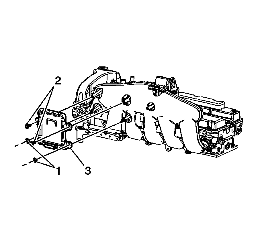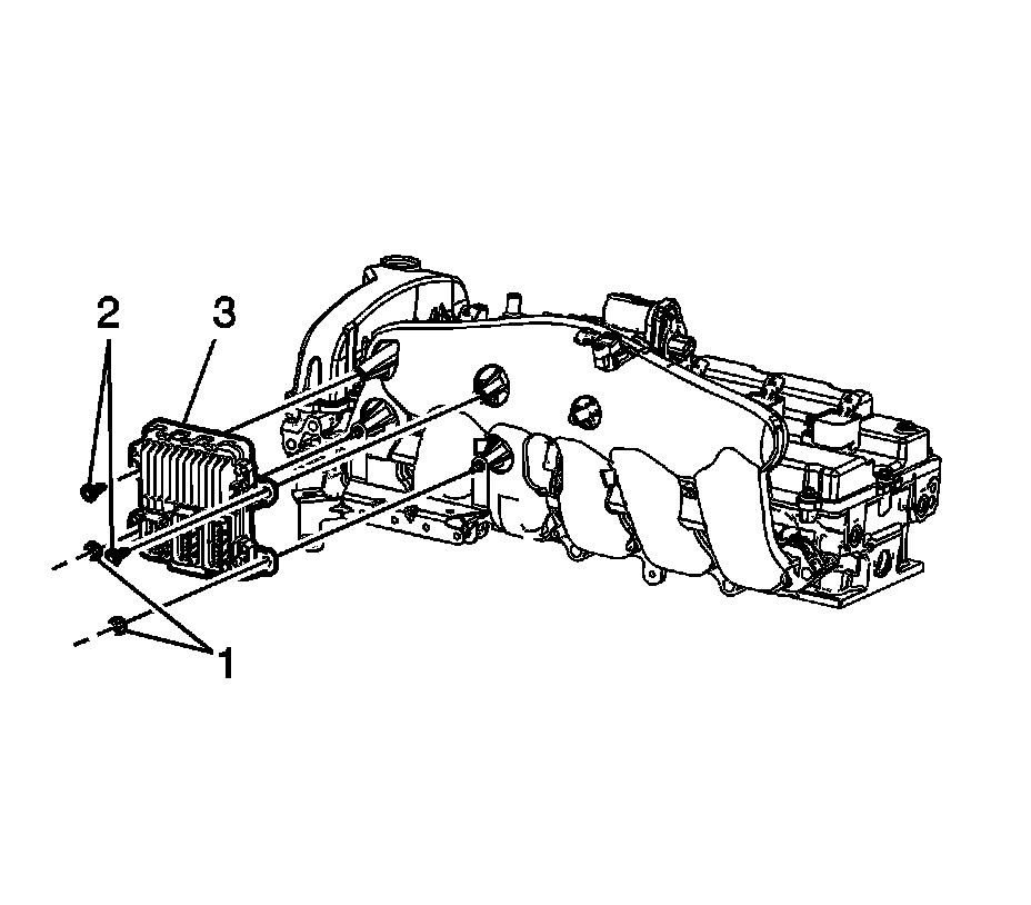 1. Install the ECM and bracket assembly (3) to the studs on the intake manifold.