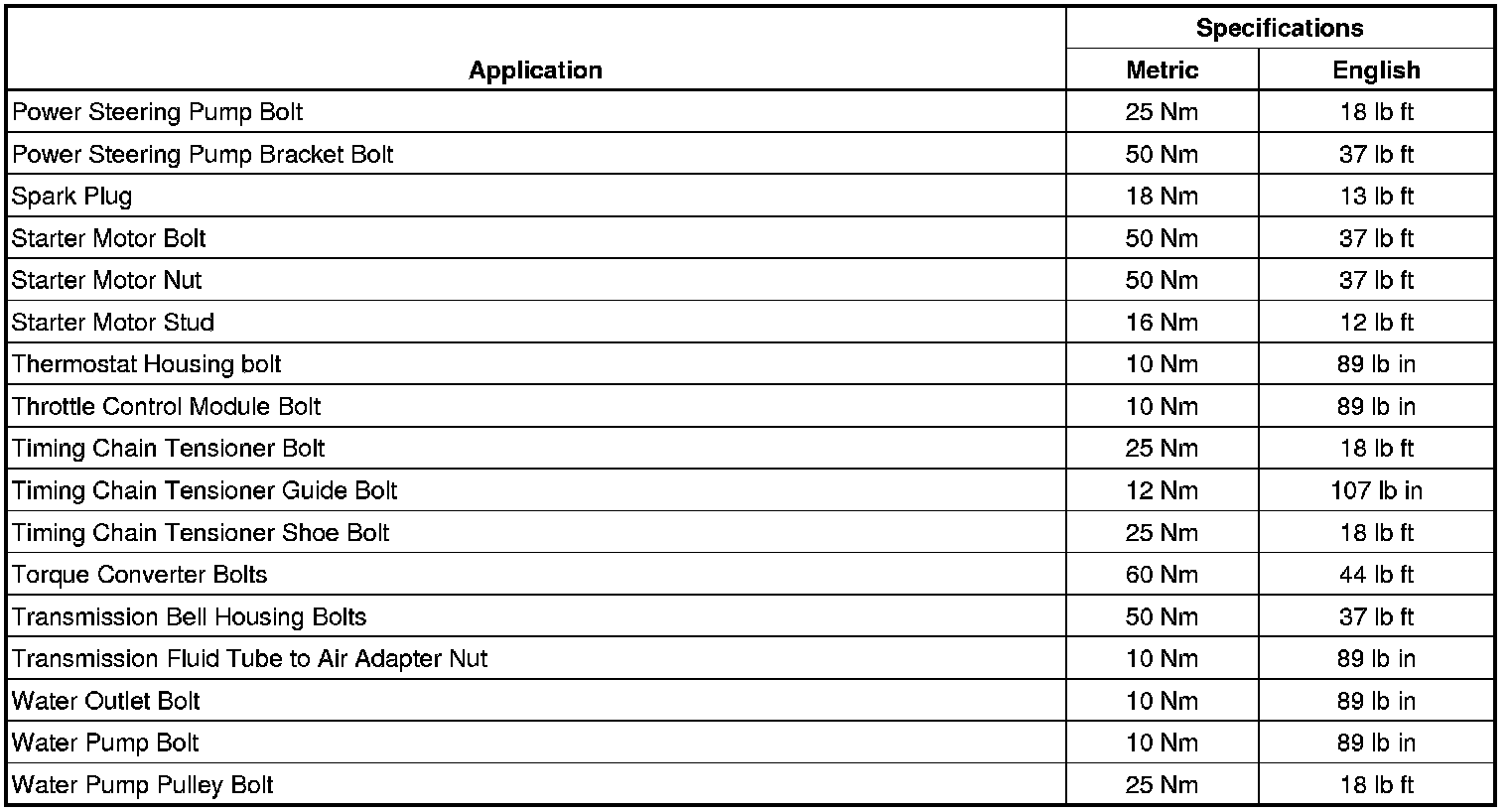 Torque Specifications