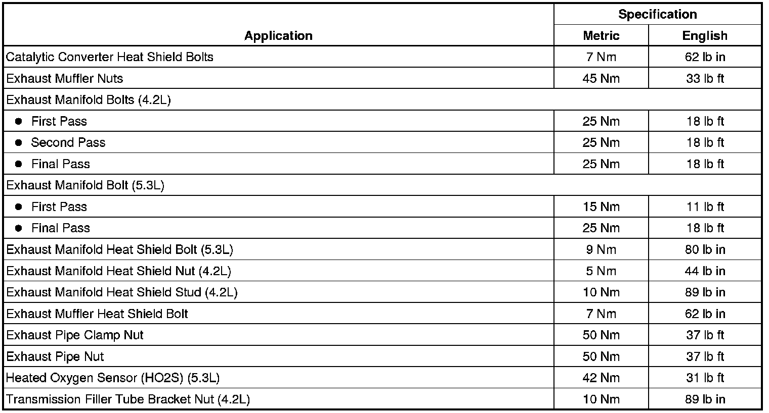 Fastener Tightening Specifications