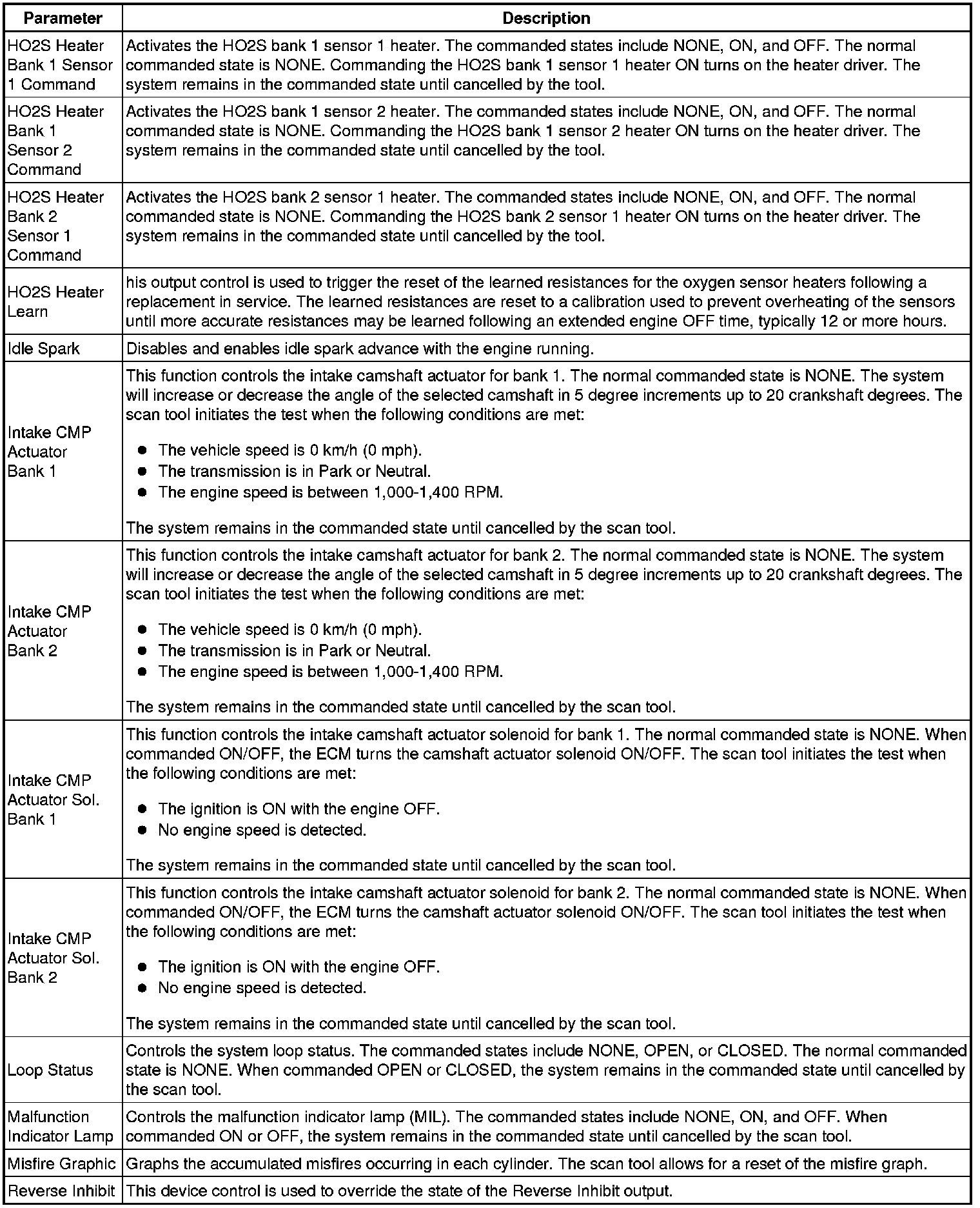 Only the parameters listed below are referenced in this service manual for use in diagnosis.
