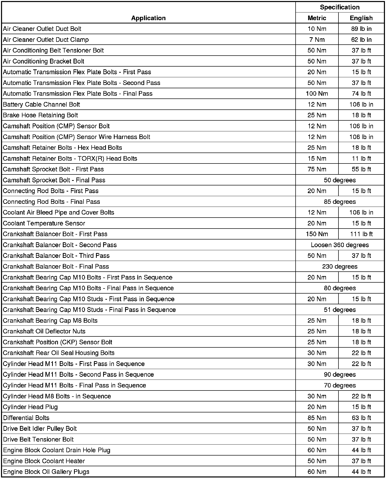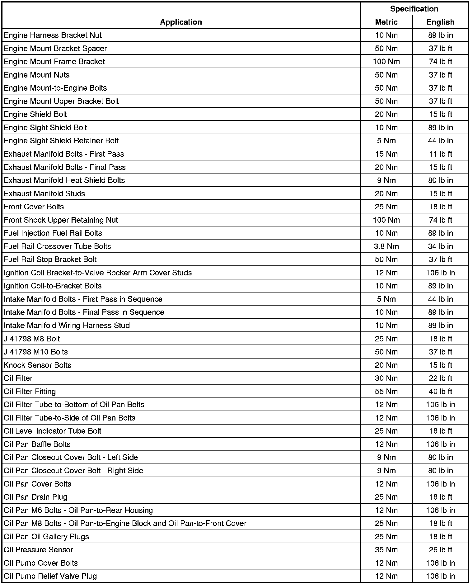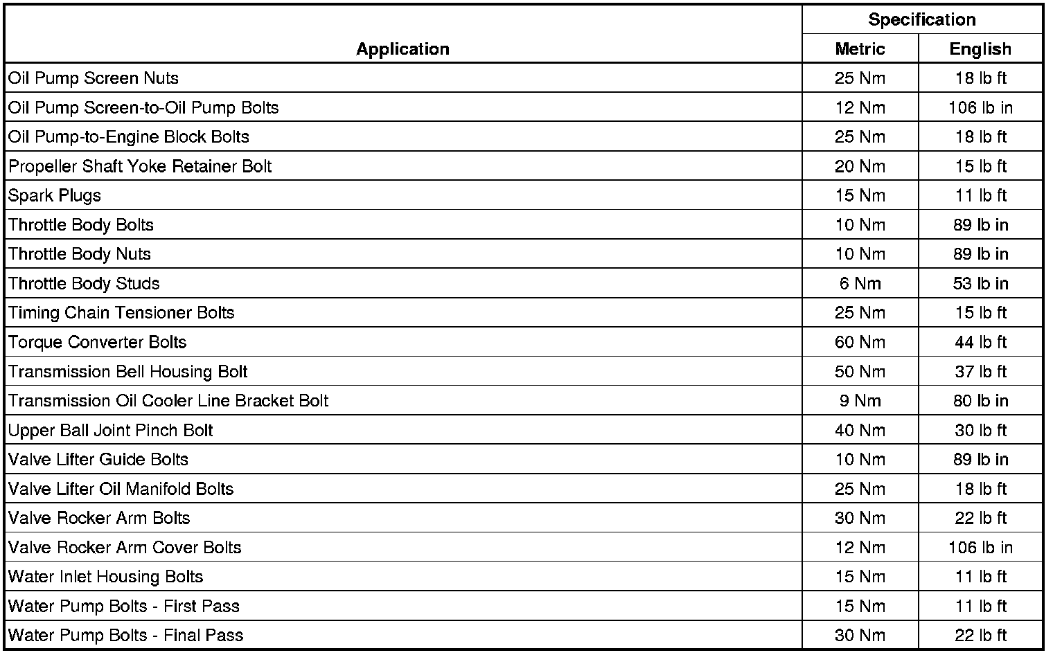 Torque Specifications