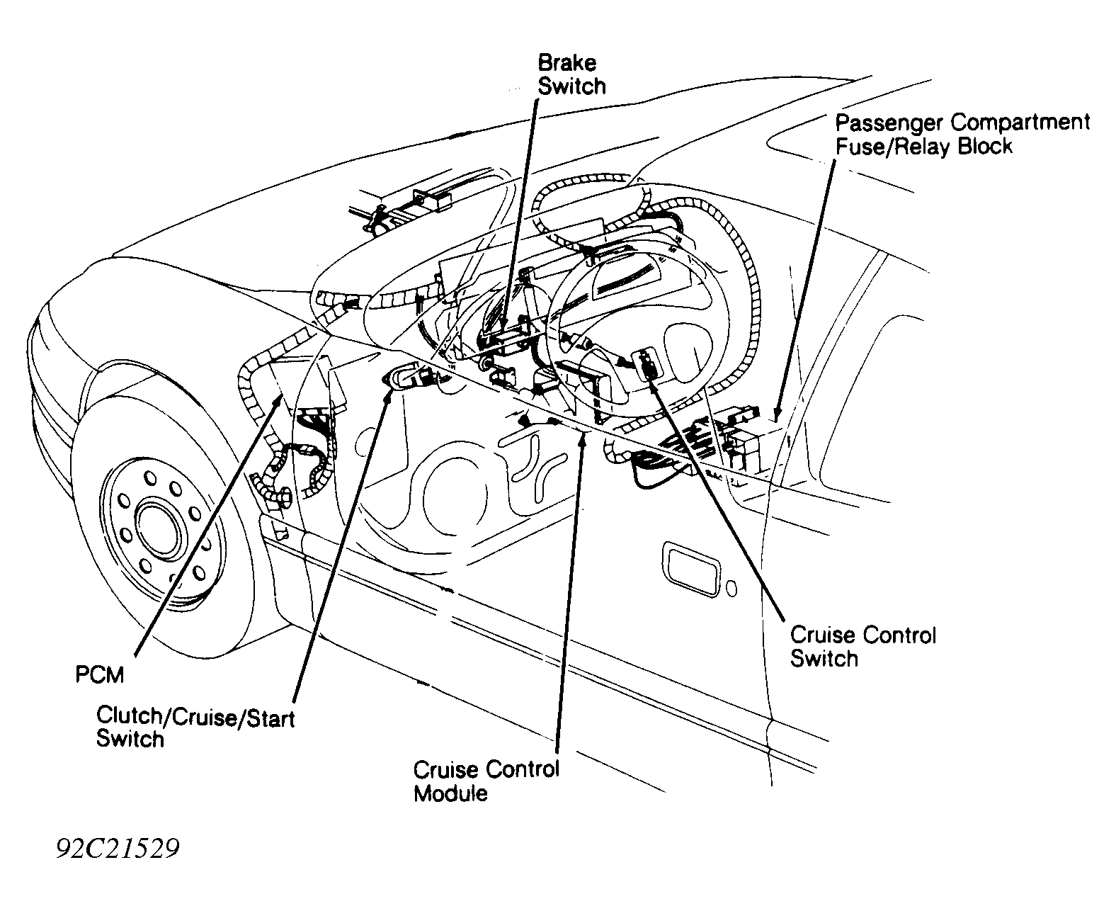 | Cruise Control Module | Under left side of dash, on right of steering column support. See Figure . |