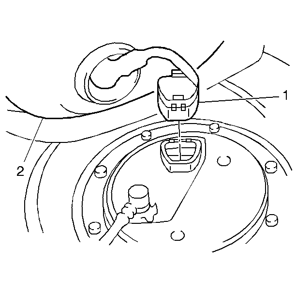 - Connect the fuel sender assembly electrical connector (1). See Figure.
