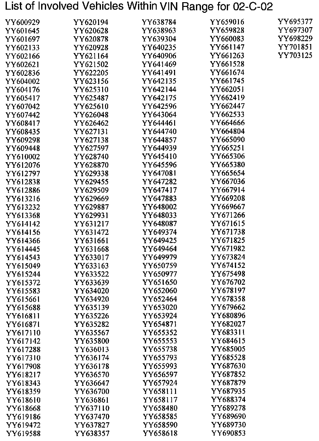 2000 Model Year VIN Range (All Models) = A VIN listing of involved vehicles is shown for your reference.