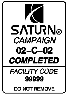 Upon completion of the campaign, a Campaign Completion Label and a Clear Protective Cover should be affixed on a clean, dry surface of the radiator core support in an area clearly visible when the hood is raised. Each label provides a space to print in ink (or type) the campaign number (02C02) and the 5-digit facility code of the Retailer performing the campaign service.