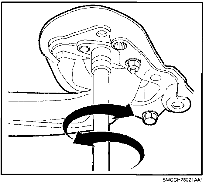 7. Loosen the rear lower control arm to knuckle bolt and move the knuckle in for more positive (+) or out for more negative Camber. It may be helpful to scribe around the bolt head as a reference before making adjustments.