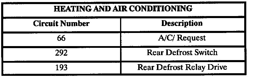 When the rear defrost input circuit 292 to the BCM is momentarily switched to ground (as when the rear defrost switch is pressed), the BCM will respond by grounding circuit 193, the coil of the rear defrost relay.