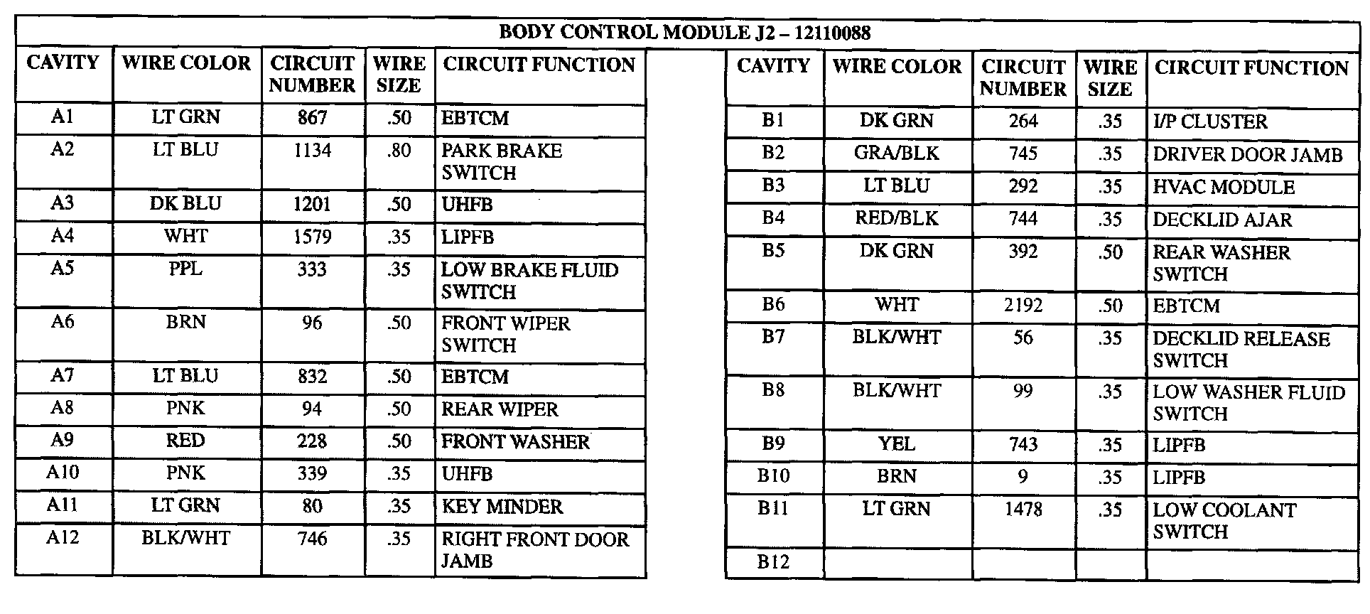 Body Control Module J2:
