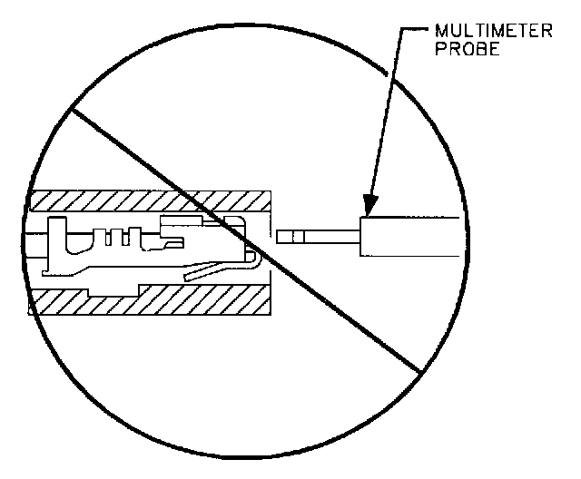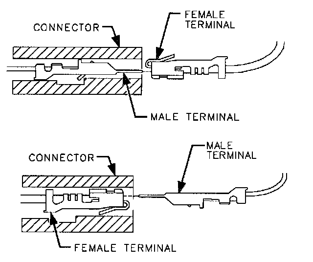 The second function is to determine if a terminal's contacts have been spread apart, resulting in an open or intermittent open. This is known as a terminal tightness test. Connector terminals make contact with the pin by means of a tang which is sprung against the pin. If the tang is spread apart by a meter probe, the tang will not spring back to tightly grip the pin. Test this by inserting the jumper pin and removing it, noting how well the terminal holds the pin. It should be held well enough that the pin will not fall out of the terminal.