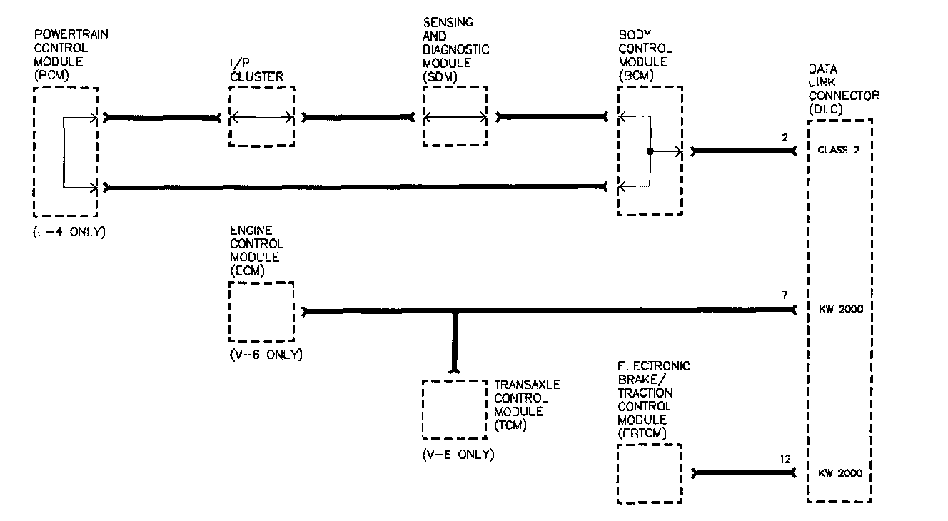 On the V6 (L81) and automatic transaxle, the Scan tool communicates over a KW2000 data link.