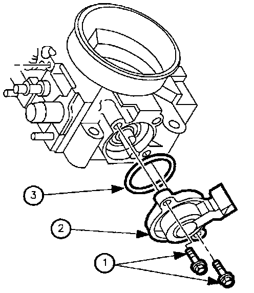 4. Apply Loctite(R) 242 Threadlocker (or equivalent) to the attachment screw threads. Install Throttle Position (TP) sensor attachment screws.