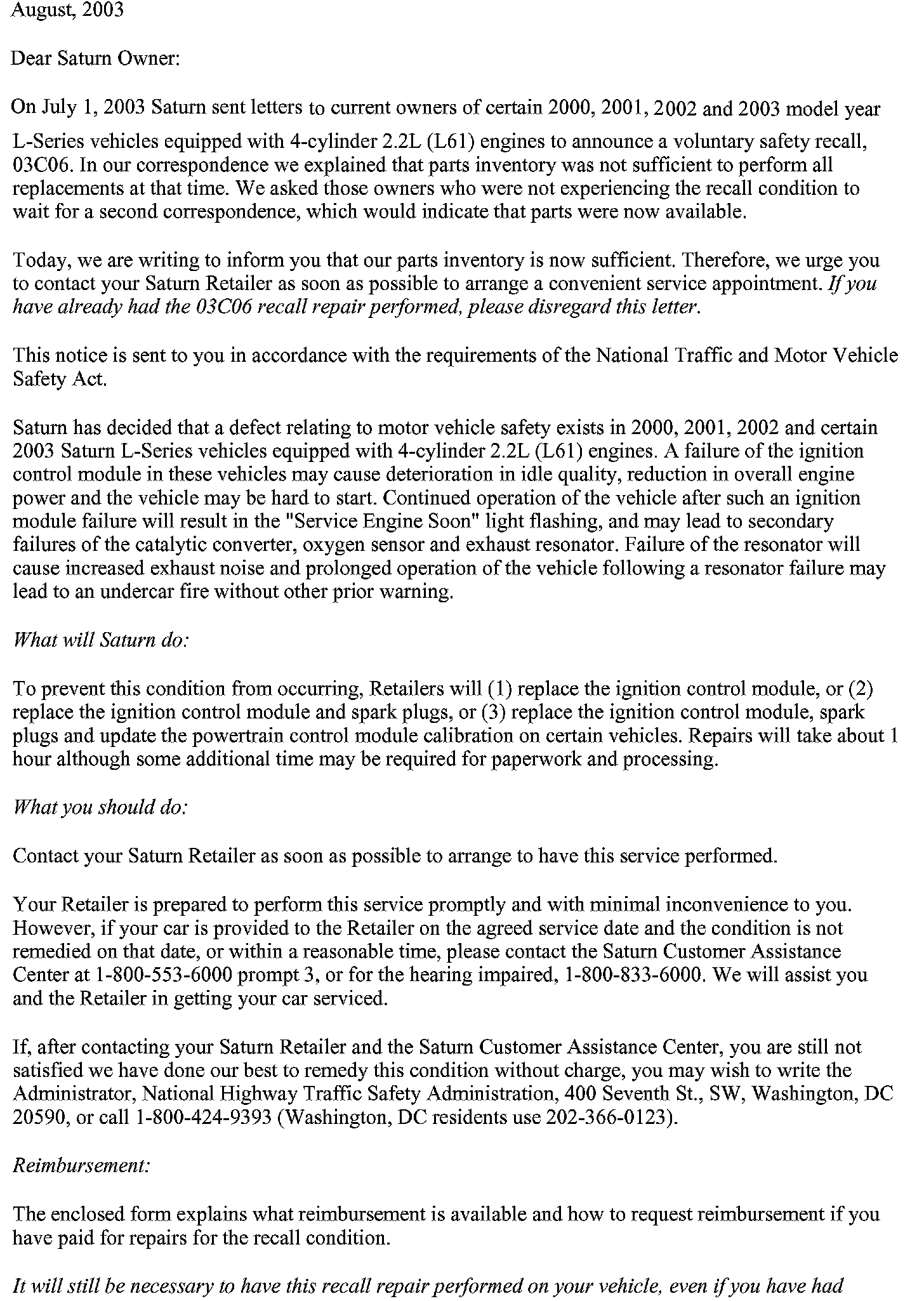 Recall - Replace Ignition Control Module