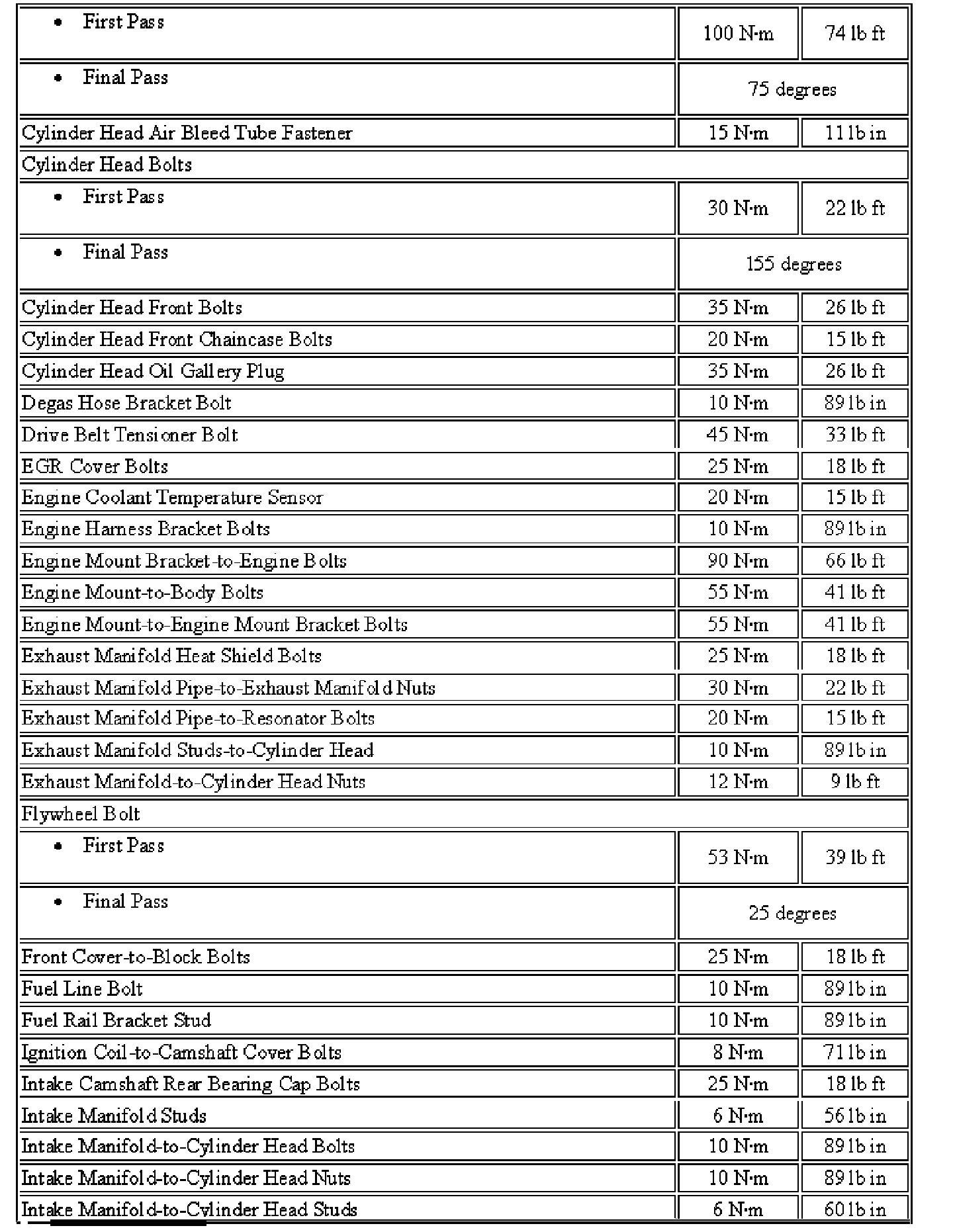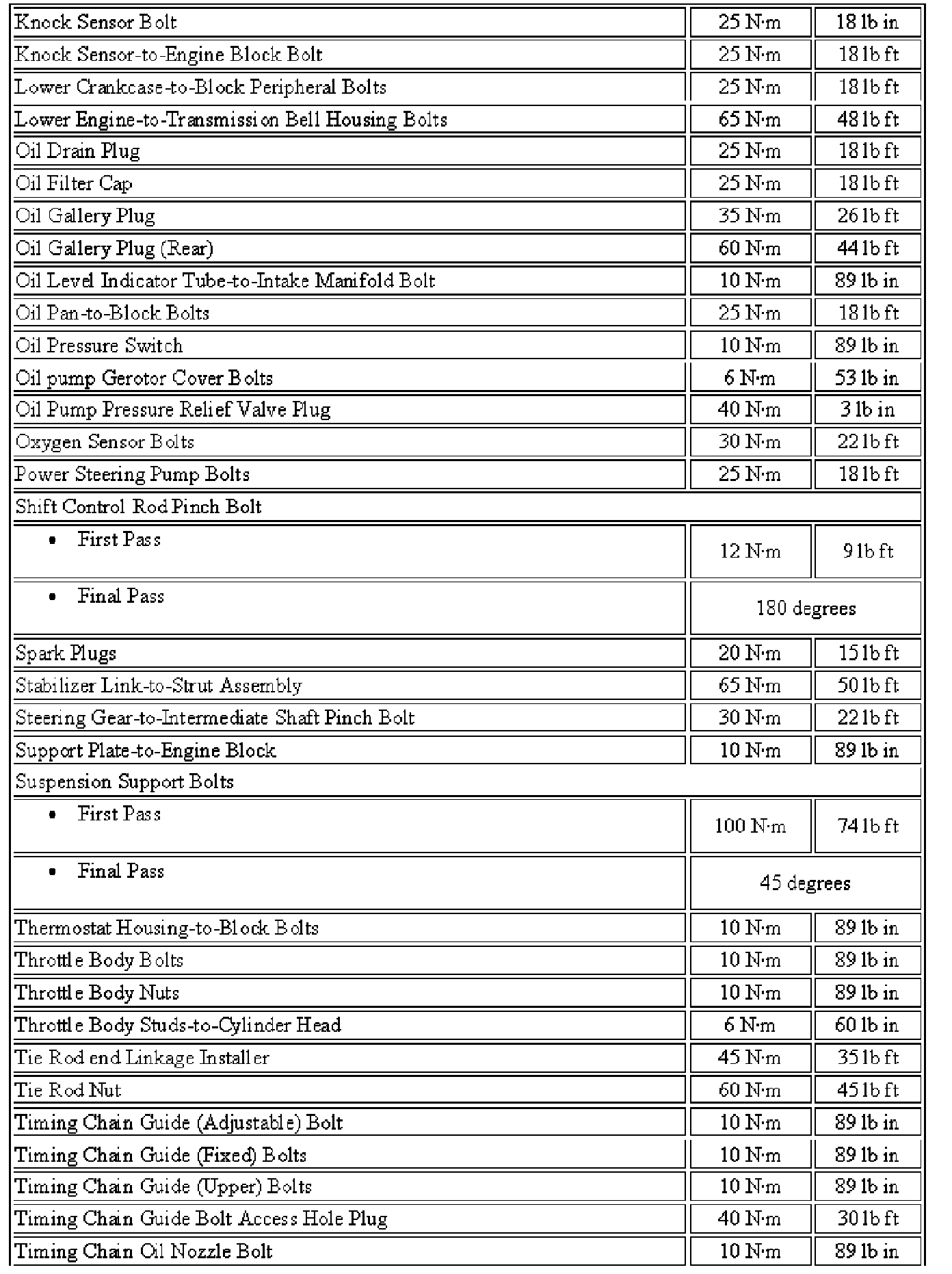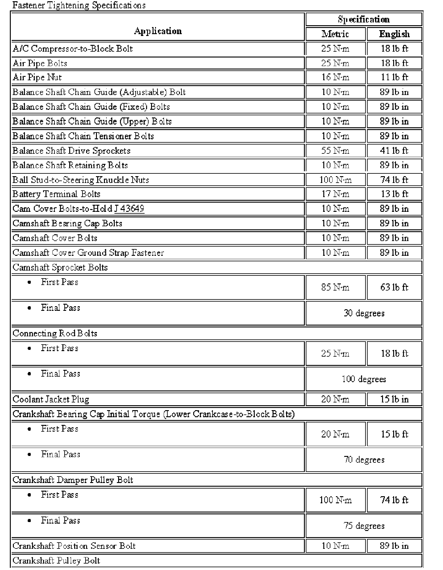 Fastener Tightening Specifications