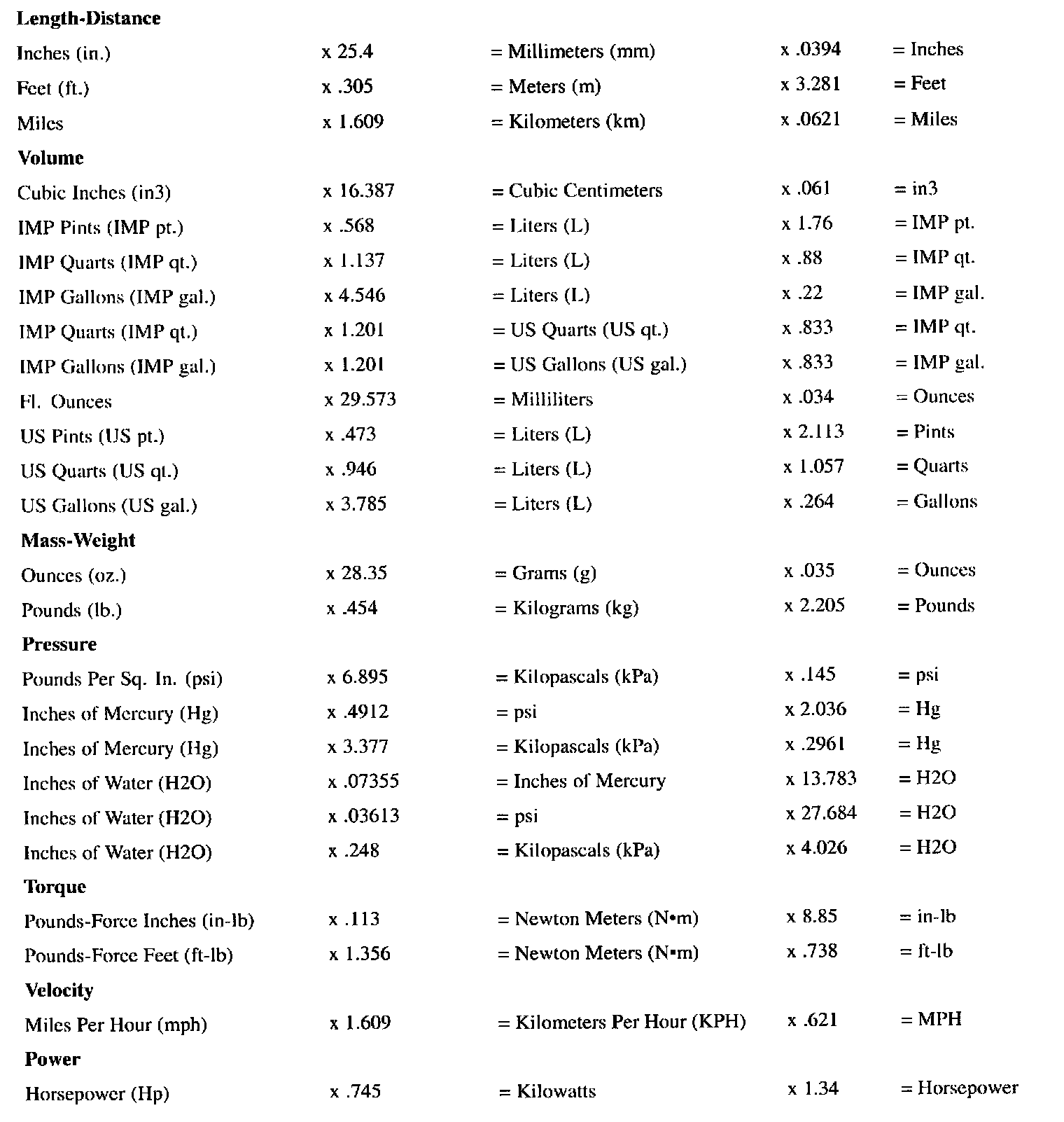 Metric-English Conversion Factors
