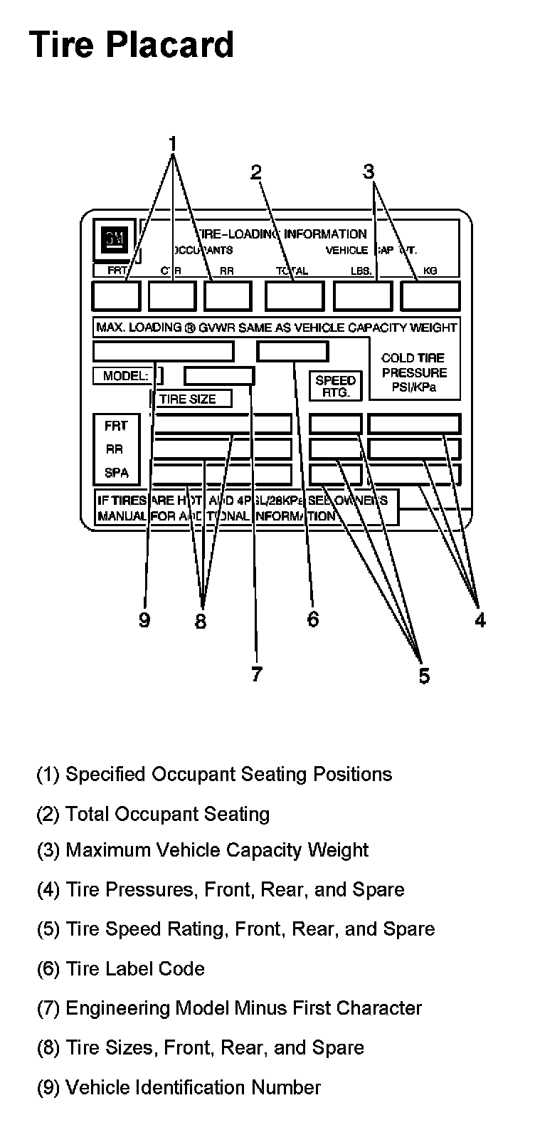 Tire Placard:
