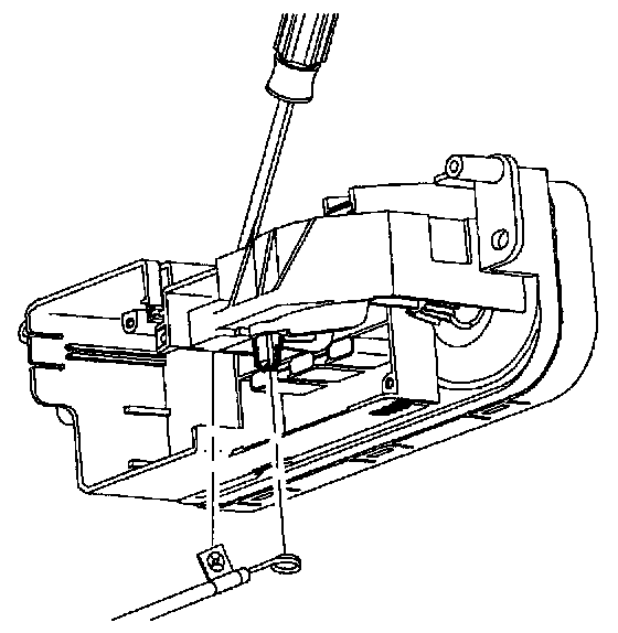 2. Install cable eyelet onto control head pin and install cable housing flag into slot in control head until it engages locking tab.
