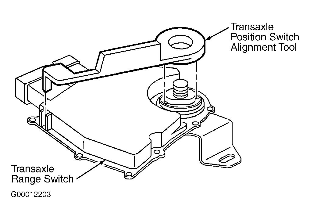 Place transaxle in Neutral. Remove shift control cable and transaxle control lever. Loosen transaxle position switch bolts. Using Transaxle Position Switch Alignment Tool (J41545), rotate switch until tool drops into position. See Fig 1 . Tighten transaxle position switch bolts. Ensure engine starts only in Park or Neutral position.