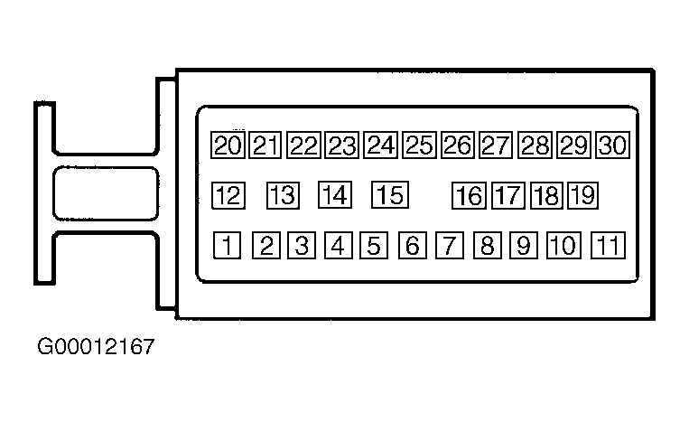 6. Connect test light between battery voltage and Black 30-pin EBTCM connector terminals No. 12 and 15 (Black wires). If test light illuminates, go to next step. If test light does not illuminate, repair open in appropriate Black wire between EBTCM and ground. See GROUND DISTRIBUTION article in WIRING DIAGRAMS.