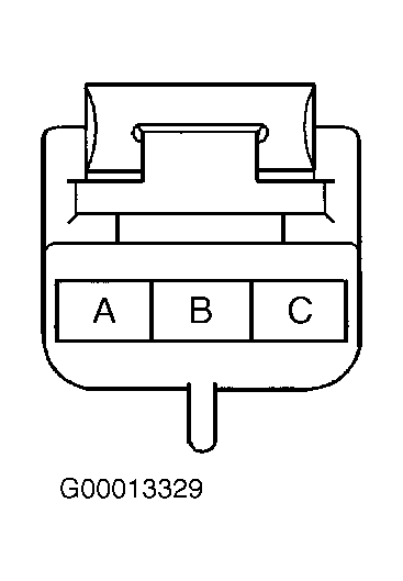 - Reconnect mirror motor connector. With a grounded test light, backprobe terminal "C" of mirror motor connector. Move mirror adjustment switch to up position, then to down position. If test light is on in both positions, repair open in Gray wire (left mirror) or Light Blue wire (right mirror) between terminal "B" of mirror motor connector and mirror switch. If test light is not on in both positions, check mirror motor connector connections. If connections are good, replace inoperative mirror motor. See POWER MIRROR MOTOR