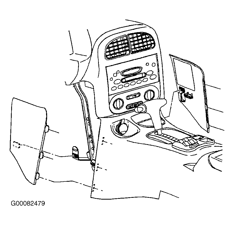 - Install front console screws and tighten to 19 INCH lbs. (2.2 N.m). Install left and right extension panels by inserting hinges into console. See Fig 4