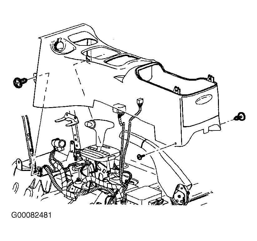 - Connect power outlet electrical connector. Remove tape from gear selector. Install rear console screws and tighten to 19 INCH lbs. (2.2 N.m). See Fig 3