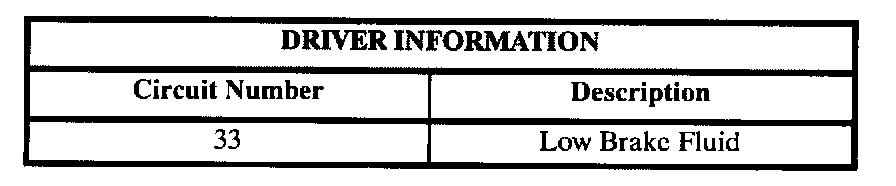 Under low brake fluid conditions, the brake fluid switch closes. When closed, the brake fluid switch grounds circuit 33. The BCM responds by sending a serial data message to the Instrument Panel Cluster (IPC) to turn On the brake telltale.