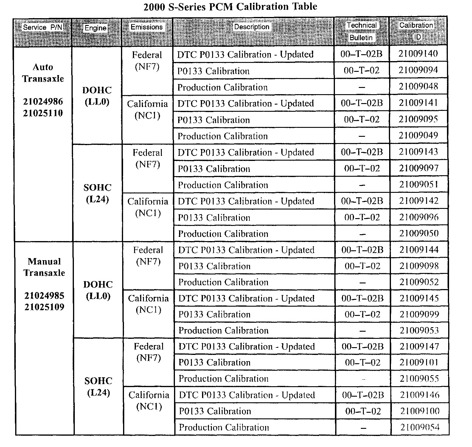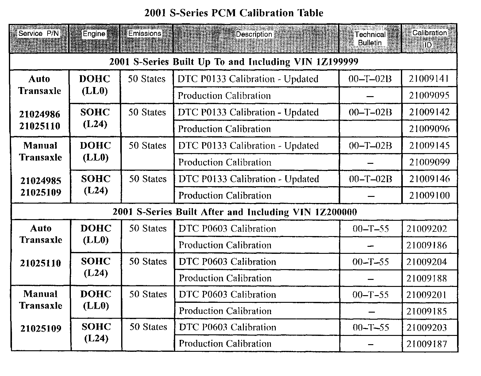 Service Information Regarding 2000 - 2001 Saturn S-Series Powertrain Control Module (PCM) Calibrations