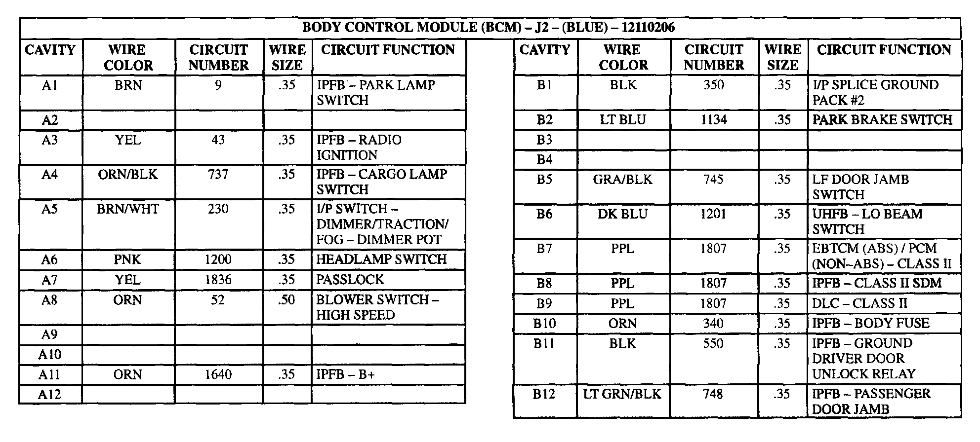 Body Control Module (BCM) - J2 (Part 1 Of 2):