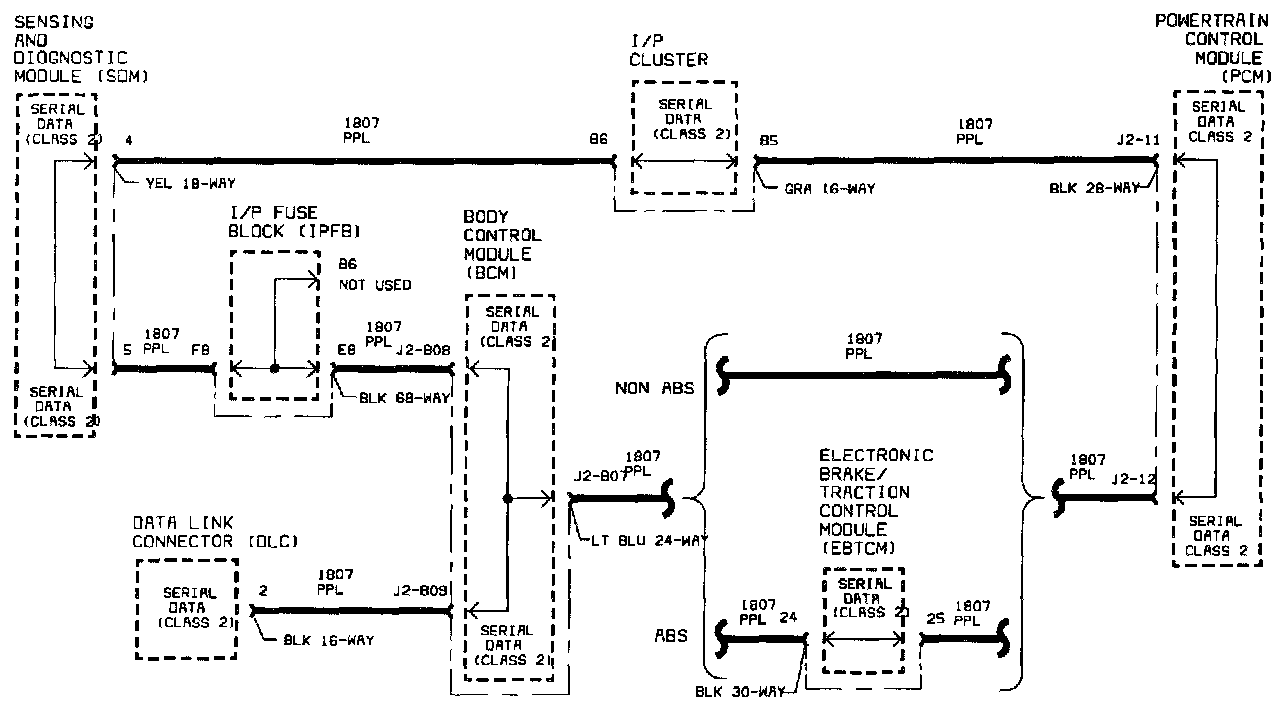 Since the BCM is the master on the Class II link and the SDM is on every vehicle, these controllers should be communicated with first since they may help to determine potential serial data link errors.