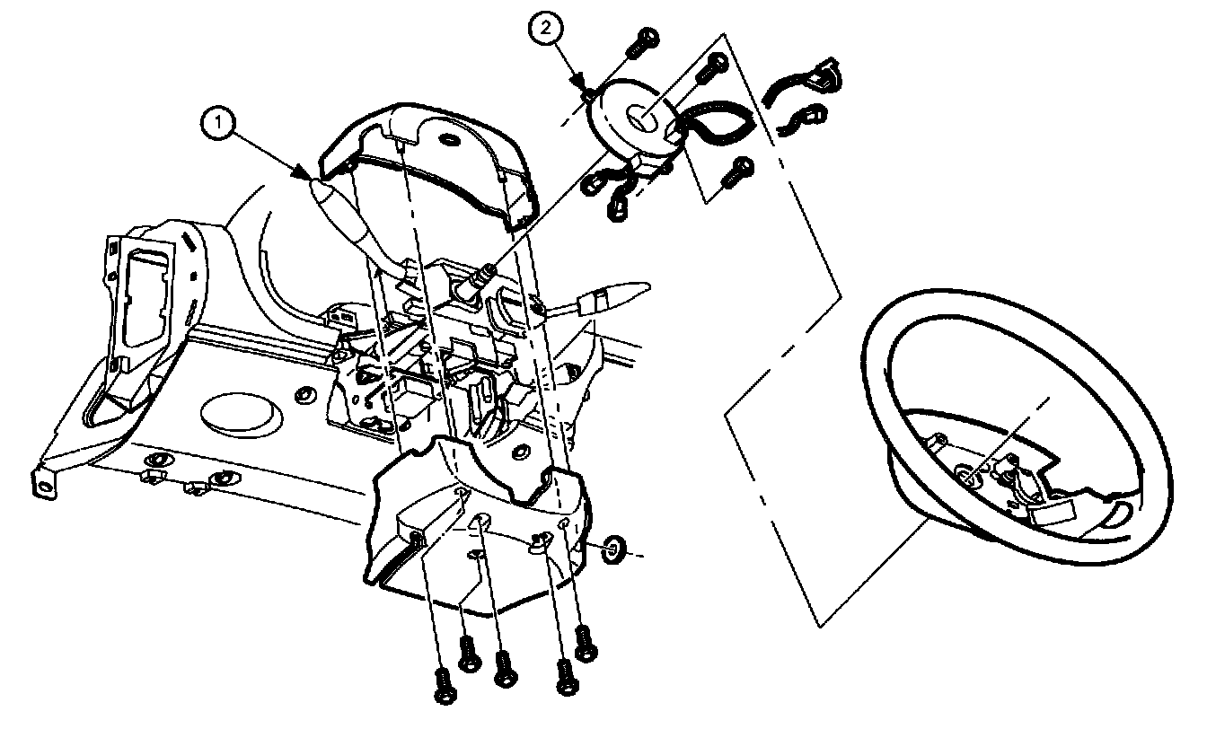 3. Remove screws and loosen screws holding data link connector near the bottom of steering column filler panel assembly. Pull steering column filler panel assembly forward and set down.