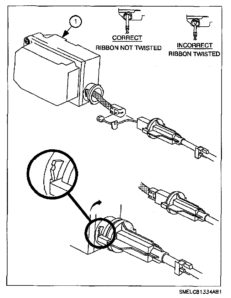 8. Disconnect cruise control throttle cable from module (1) by rotating cable 1/4 turn counter-clockwise at module.