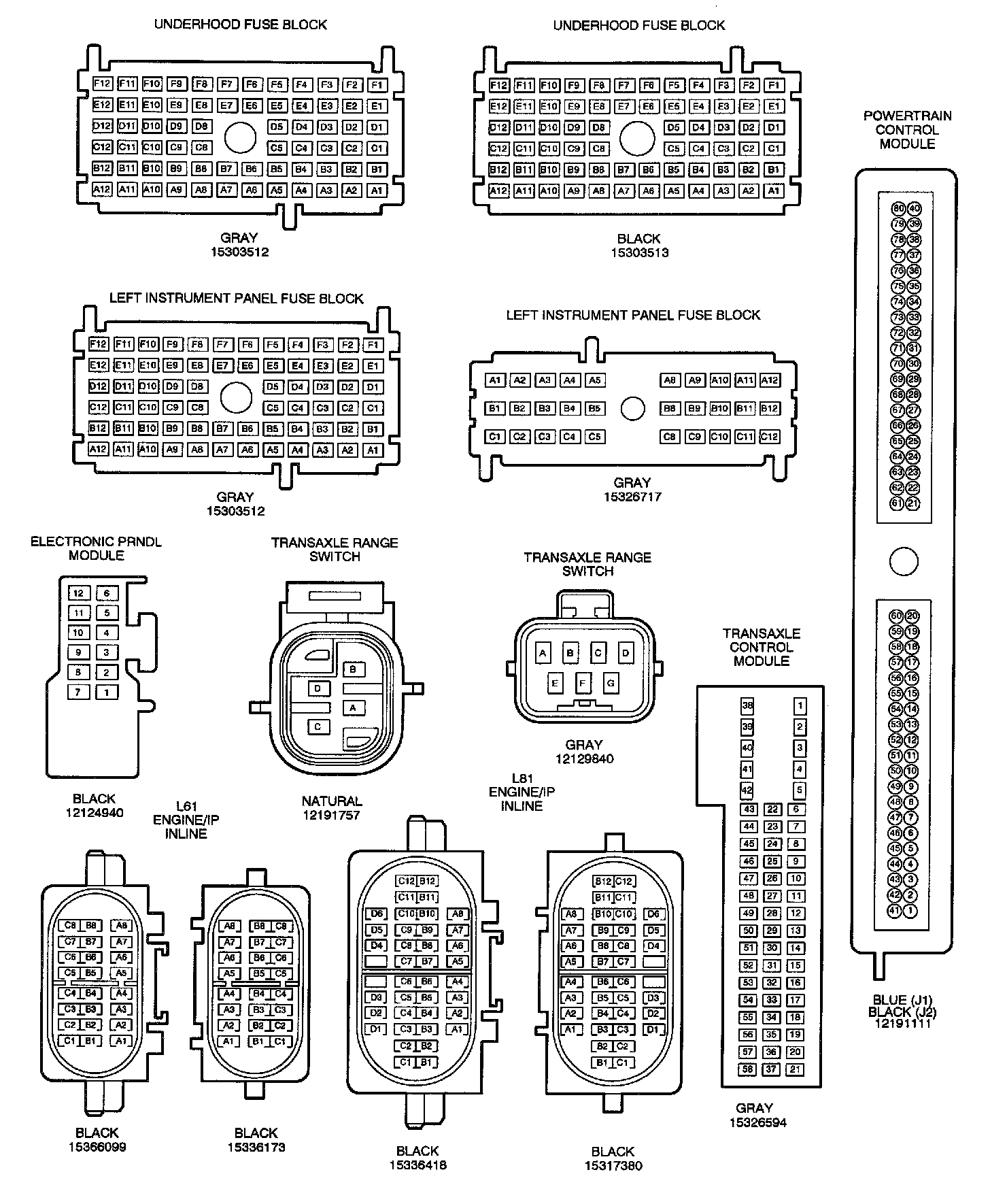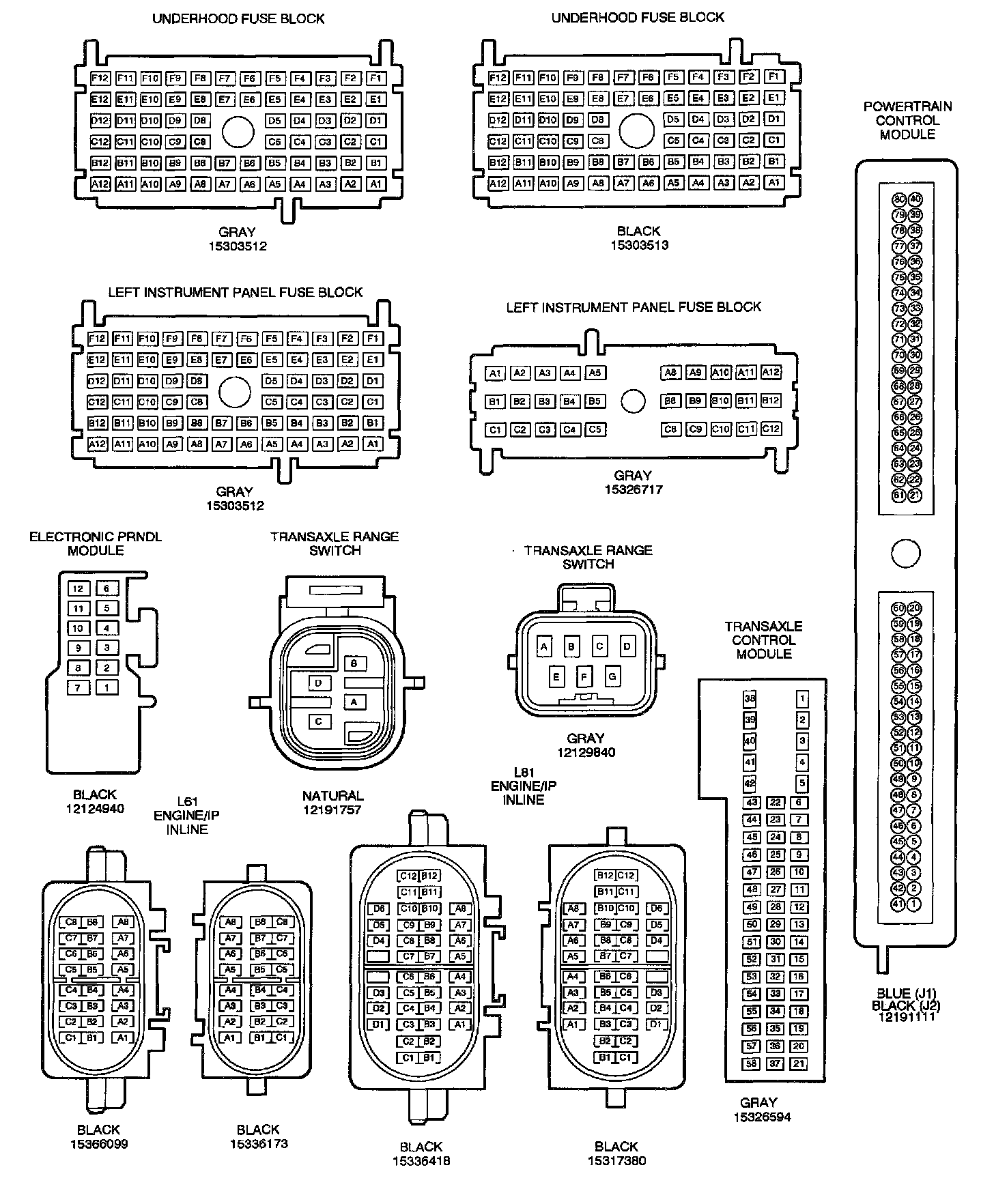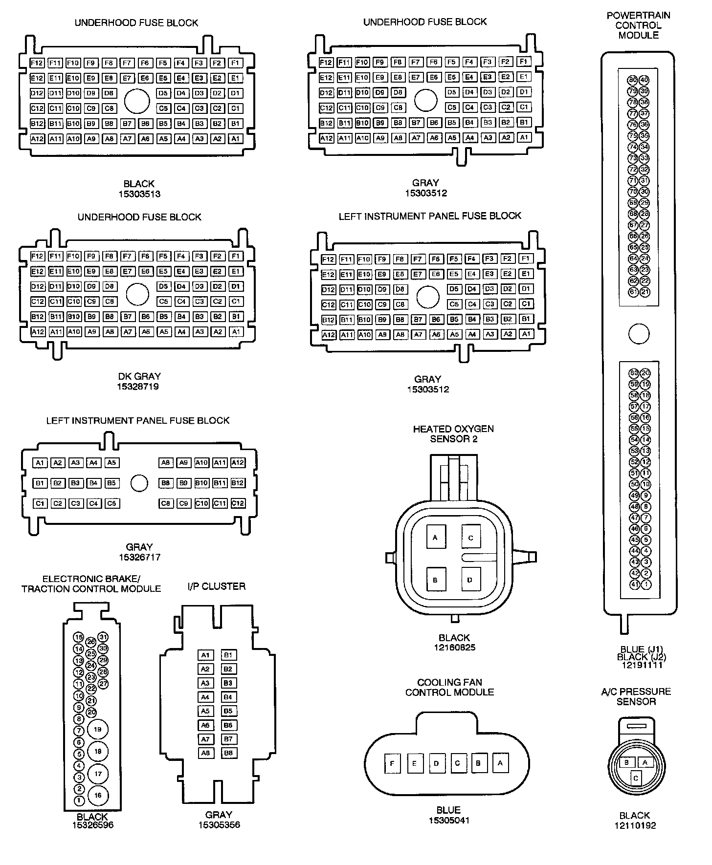 Powertrain Control Module (PCM) Connector Face Views (2001)