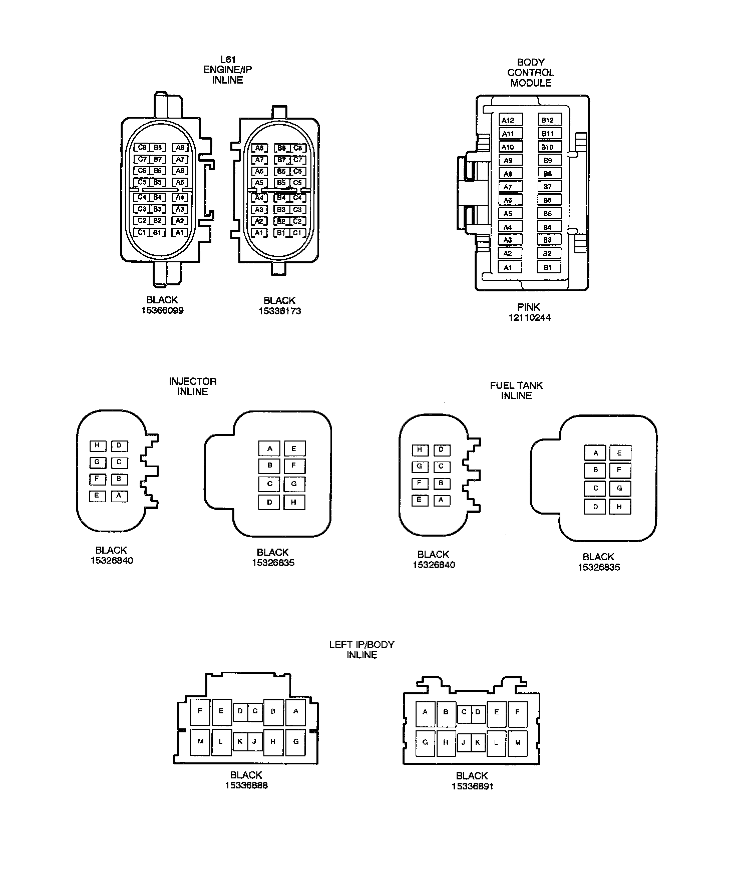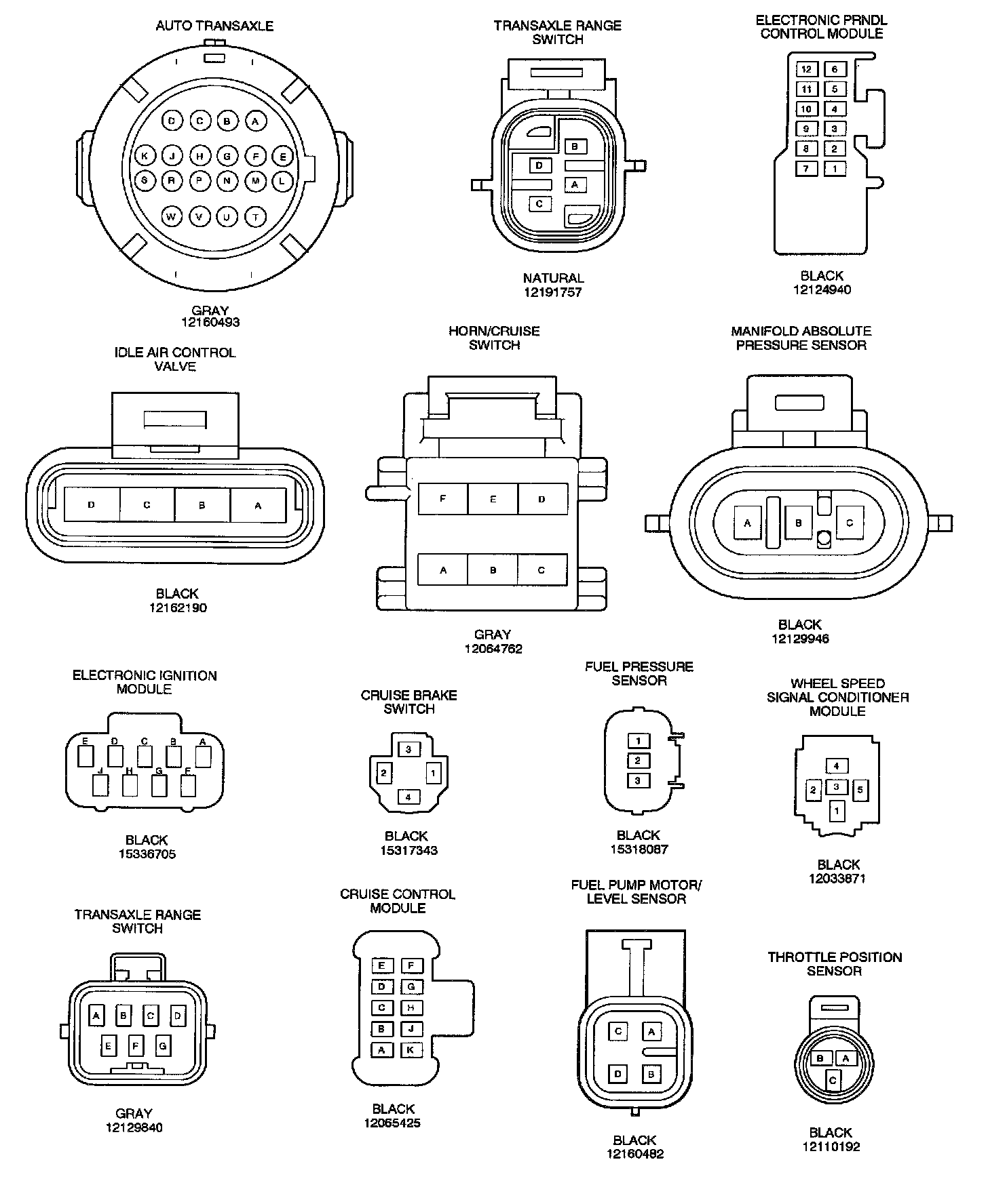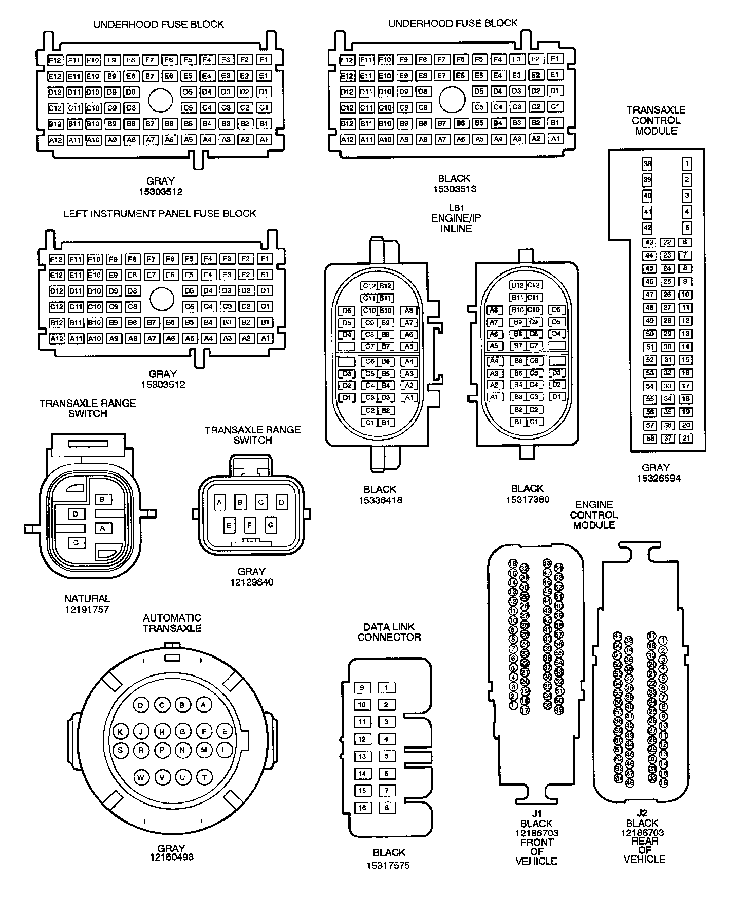 Powertrain Control Module (PCM) Connector Face Views (2001)