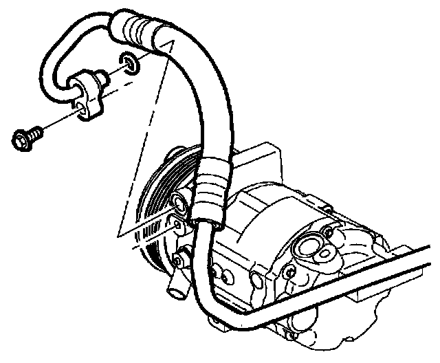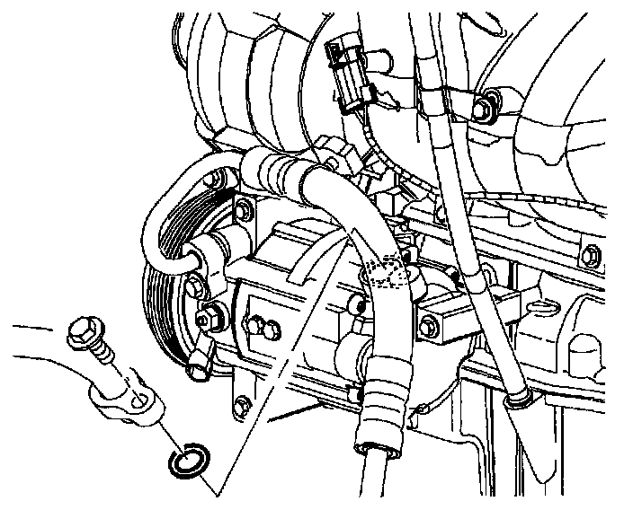 10. Remove discharge line and seal washer from compressor.