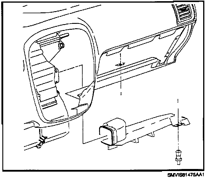 16. Install right side heater outlet with retainer to glove compartment bin.