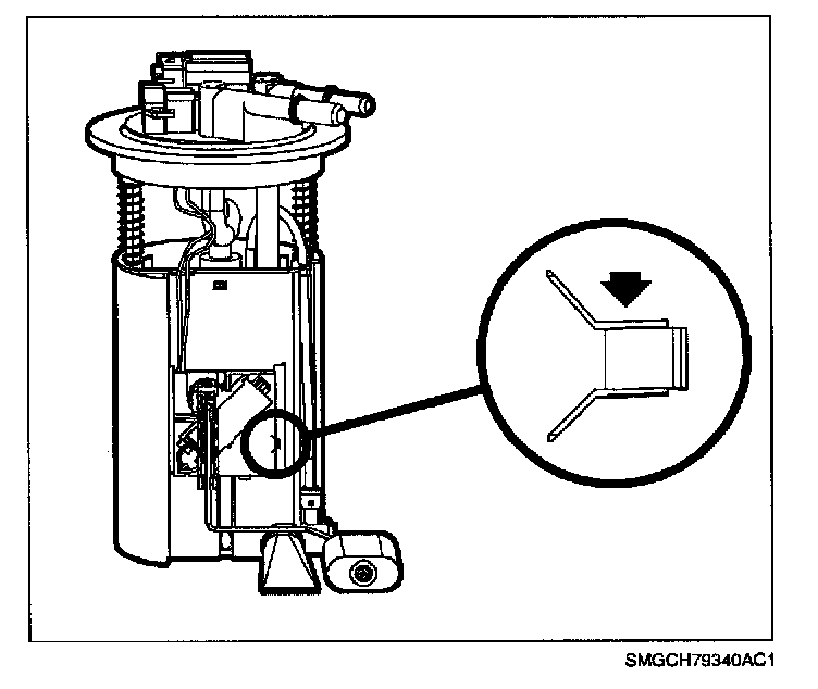 The level sender is mounted on the module housing and is a snap-lock attachment. The sender and float are serviced as a unit.