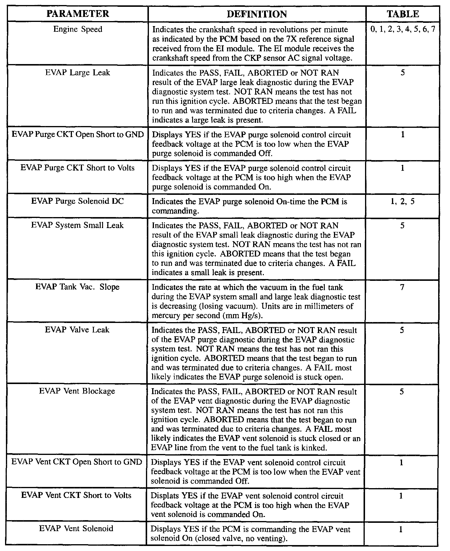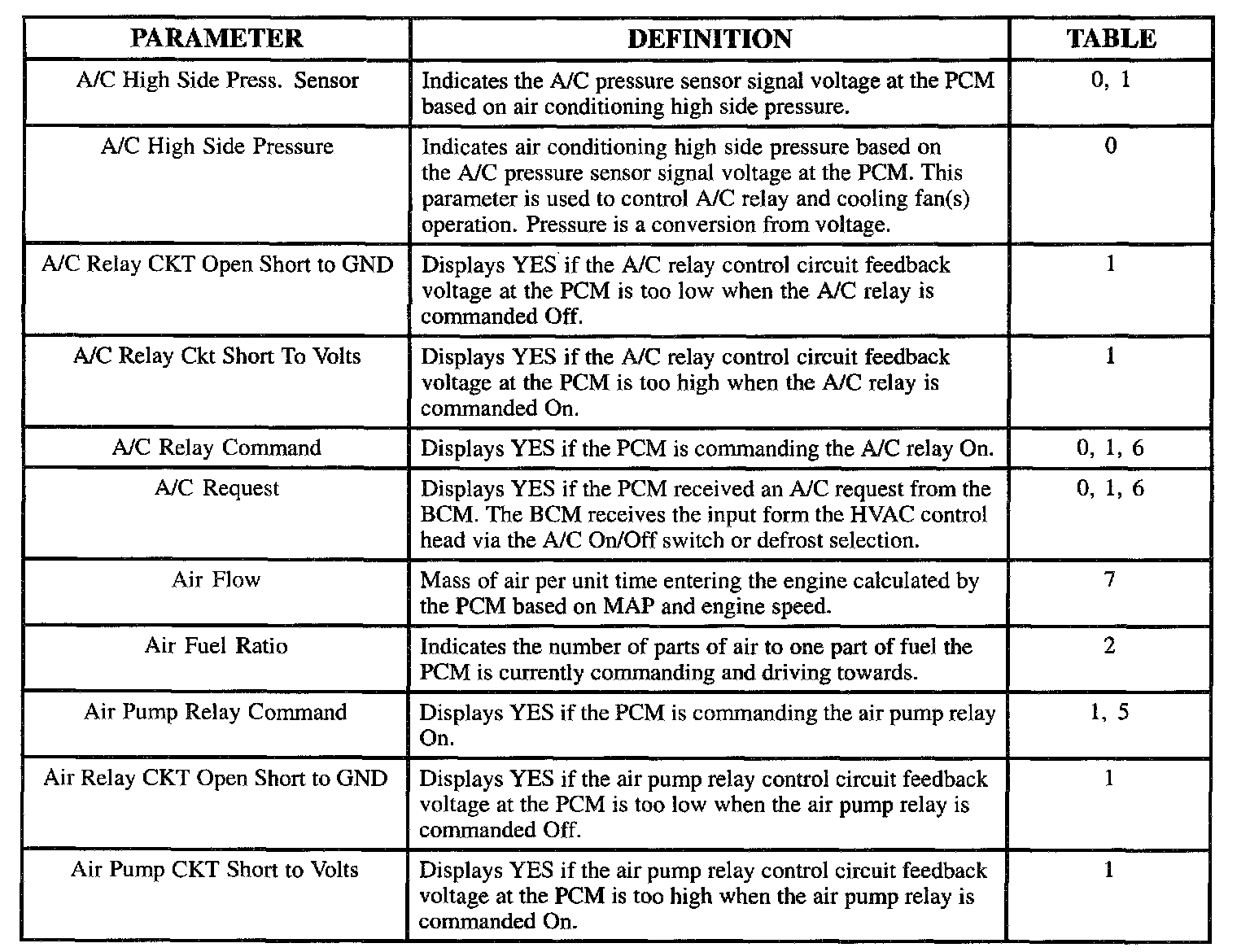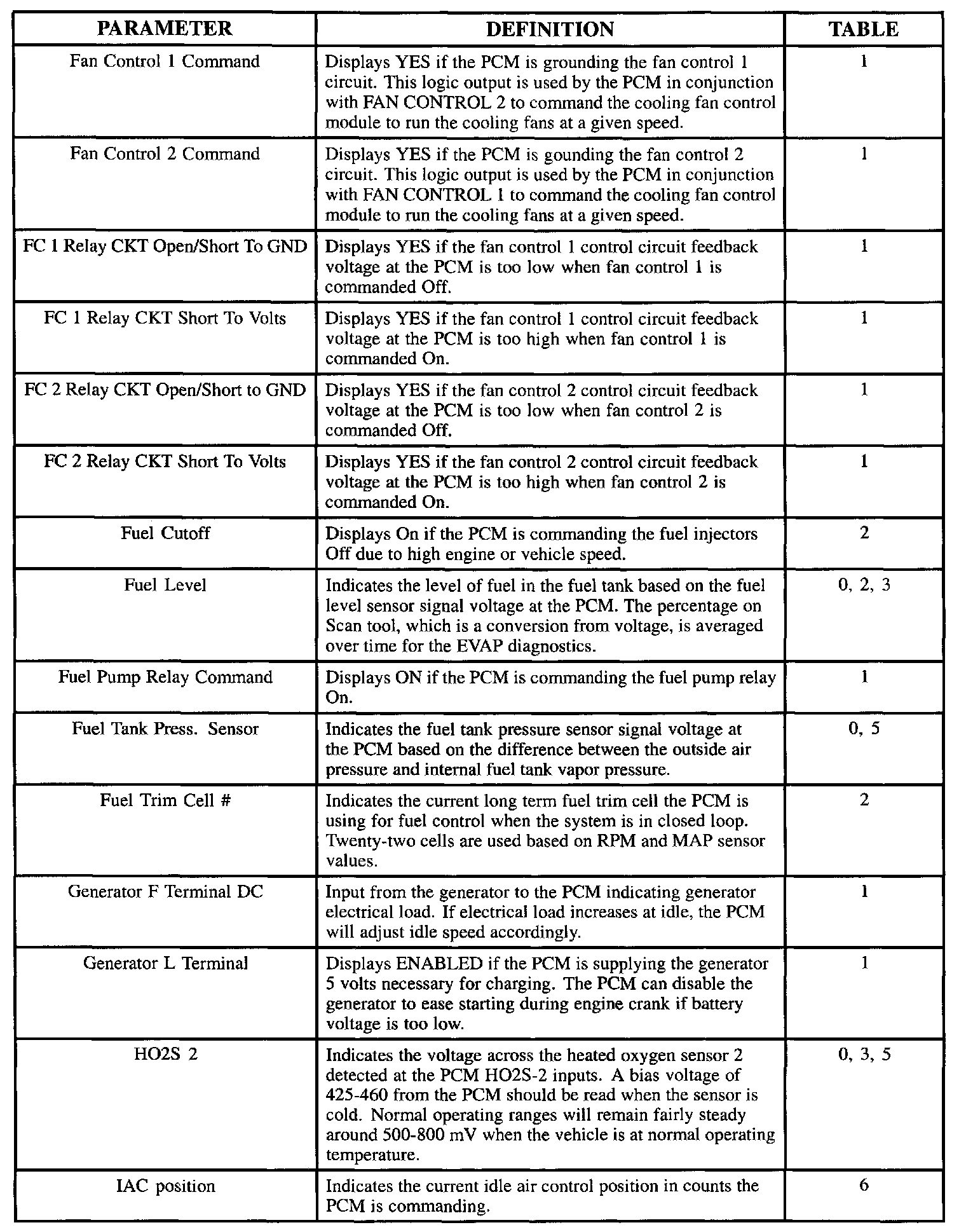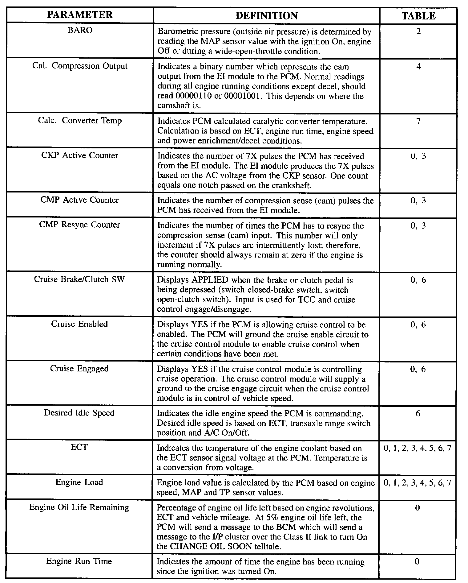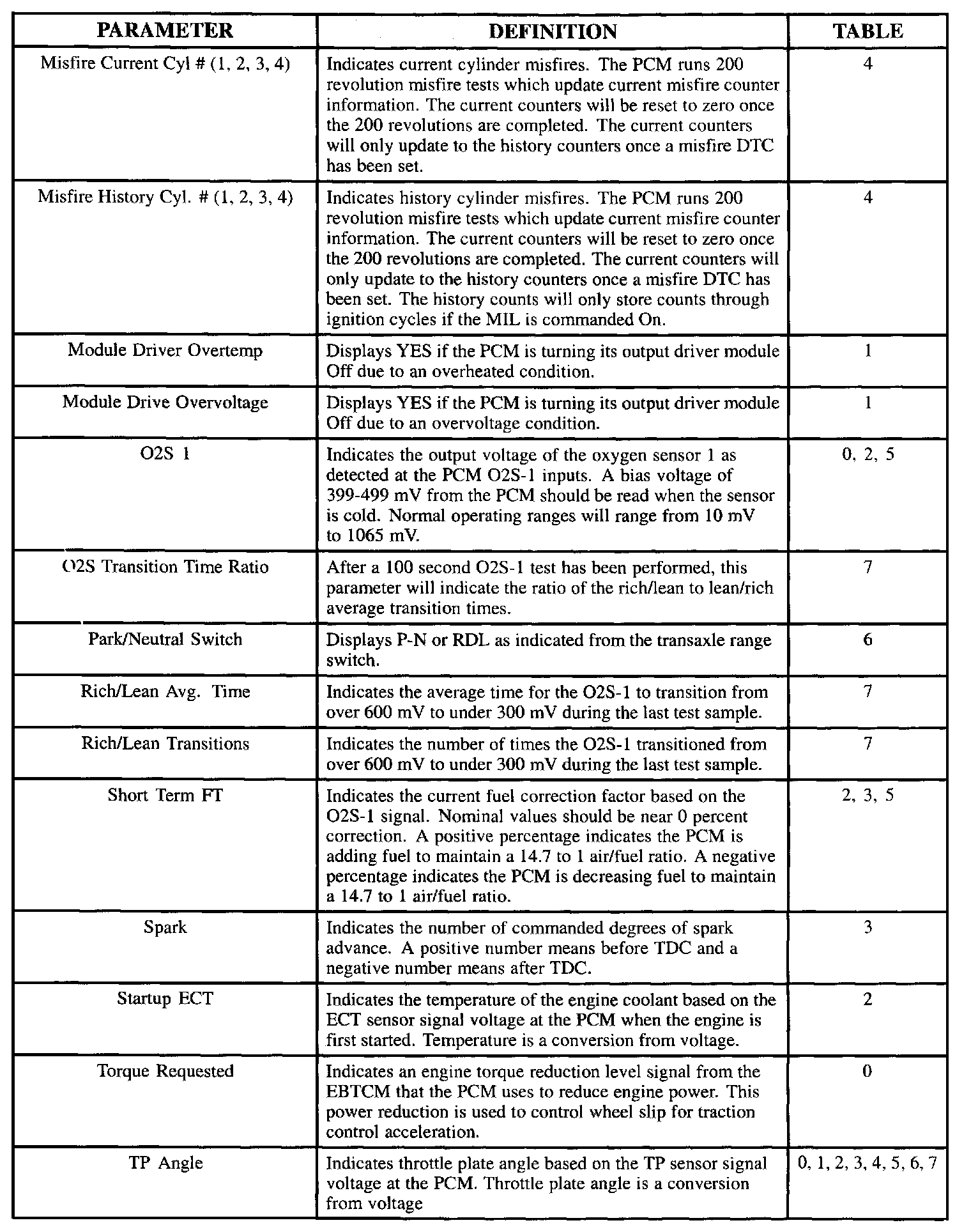 Scan Tool Parameter Definitions: