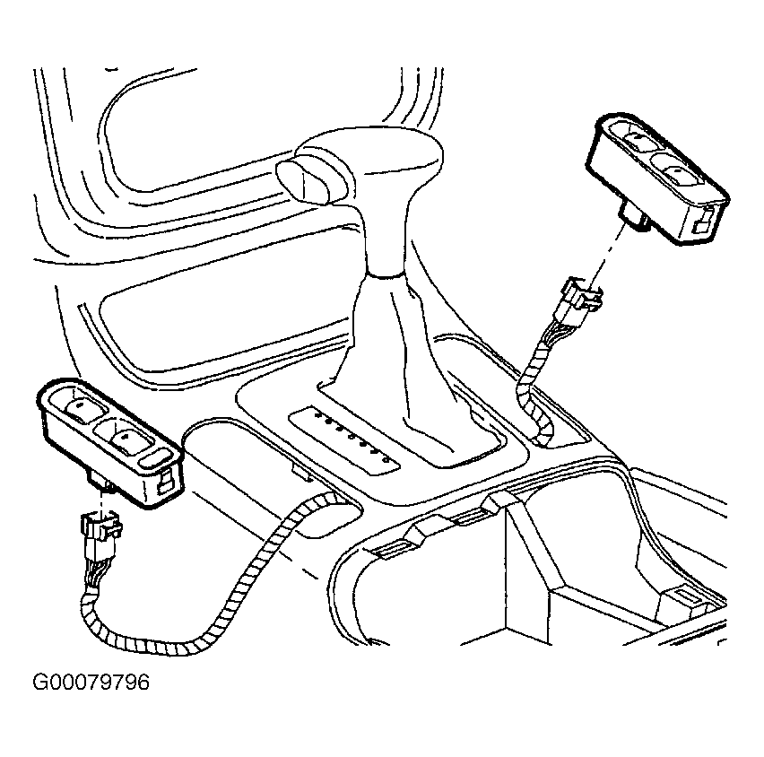 . Connect power window harness to power window switch and snap switch into place. See Fig 2