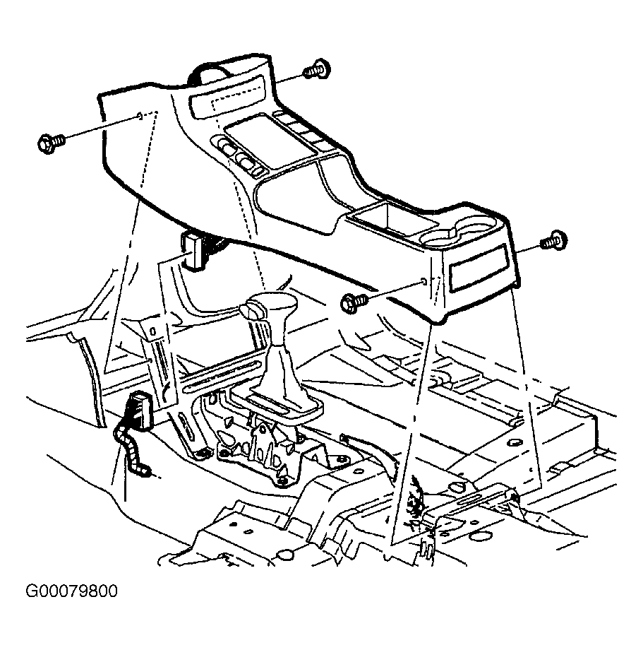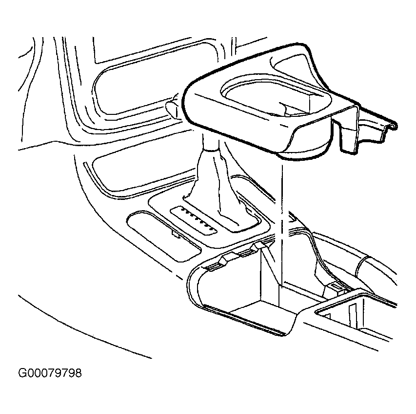 - Move front seats forward and install console rear fasteners. Tighten console rear fasteners to 22 INCH lbs. (2.5 N.m). Snap shift indicator bezel into console opening. See Fig 5