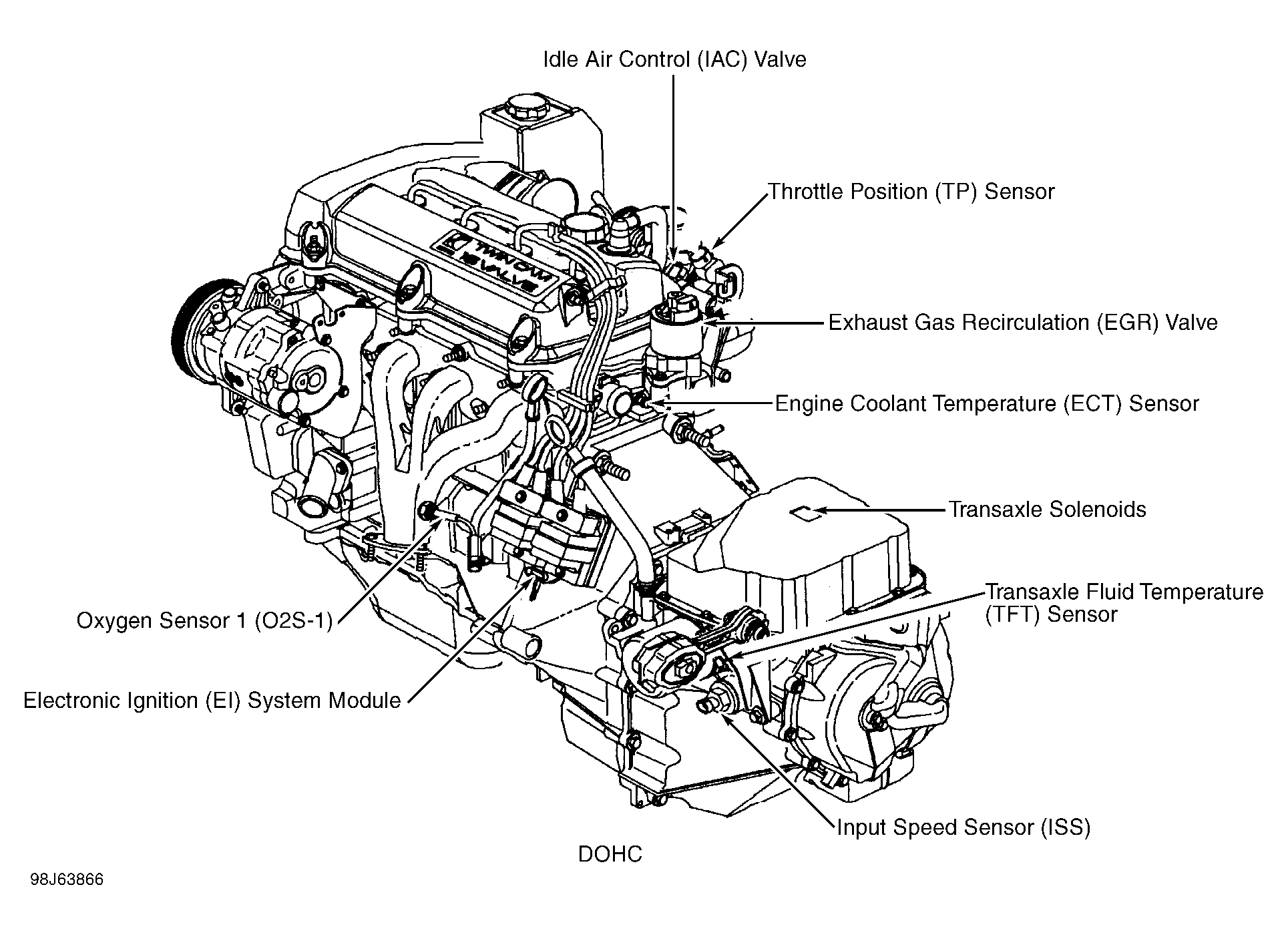 | Electronic Ignition (EI) System Module (DOHC) | On left front side of transaxle housing. See Figure. |
