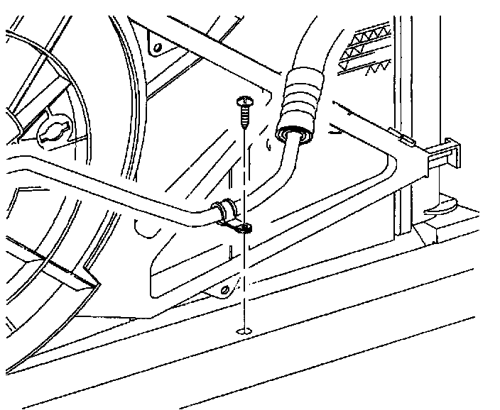 18. Remove A/C line to frame attachment clip at front of vehicle.