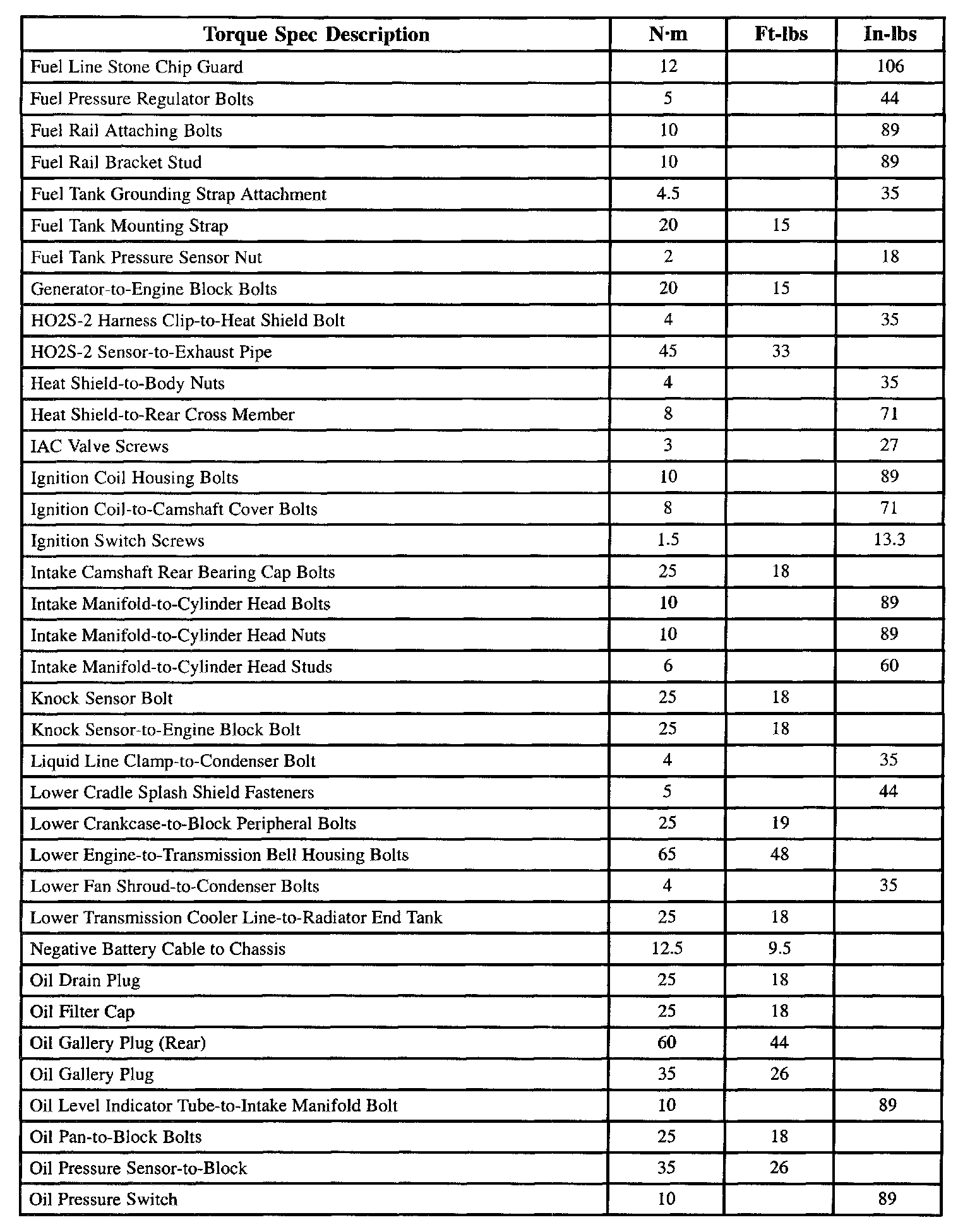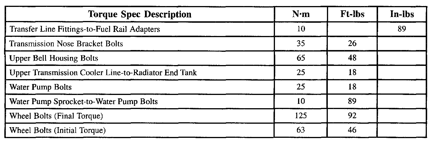Intake Manifold-to-Cylinder Head Bolts: 10 Nm (89 inch lbs.)