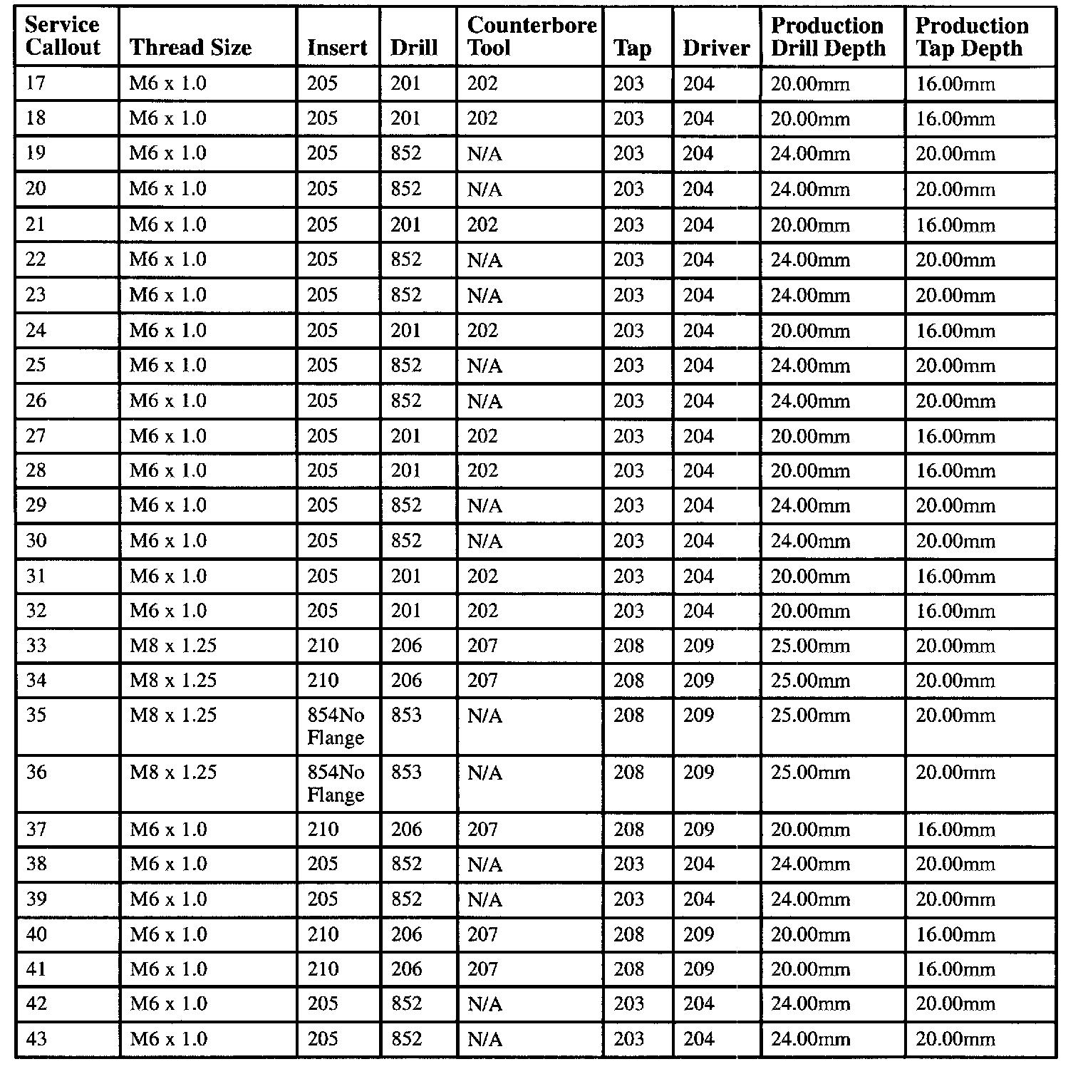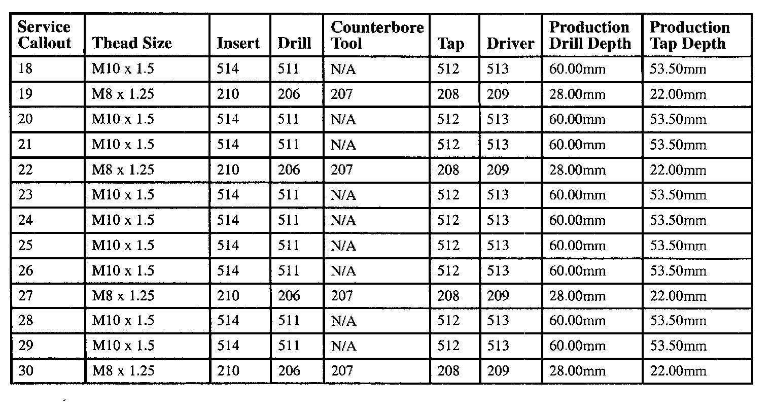Thread Repair Specifications