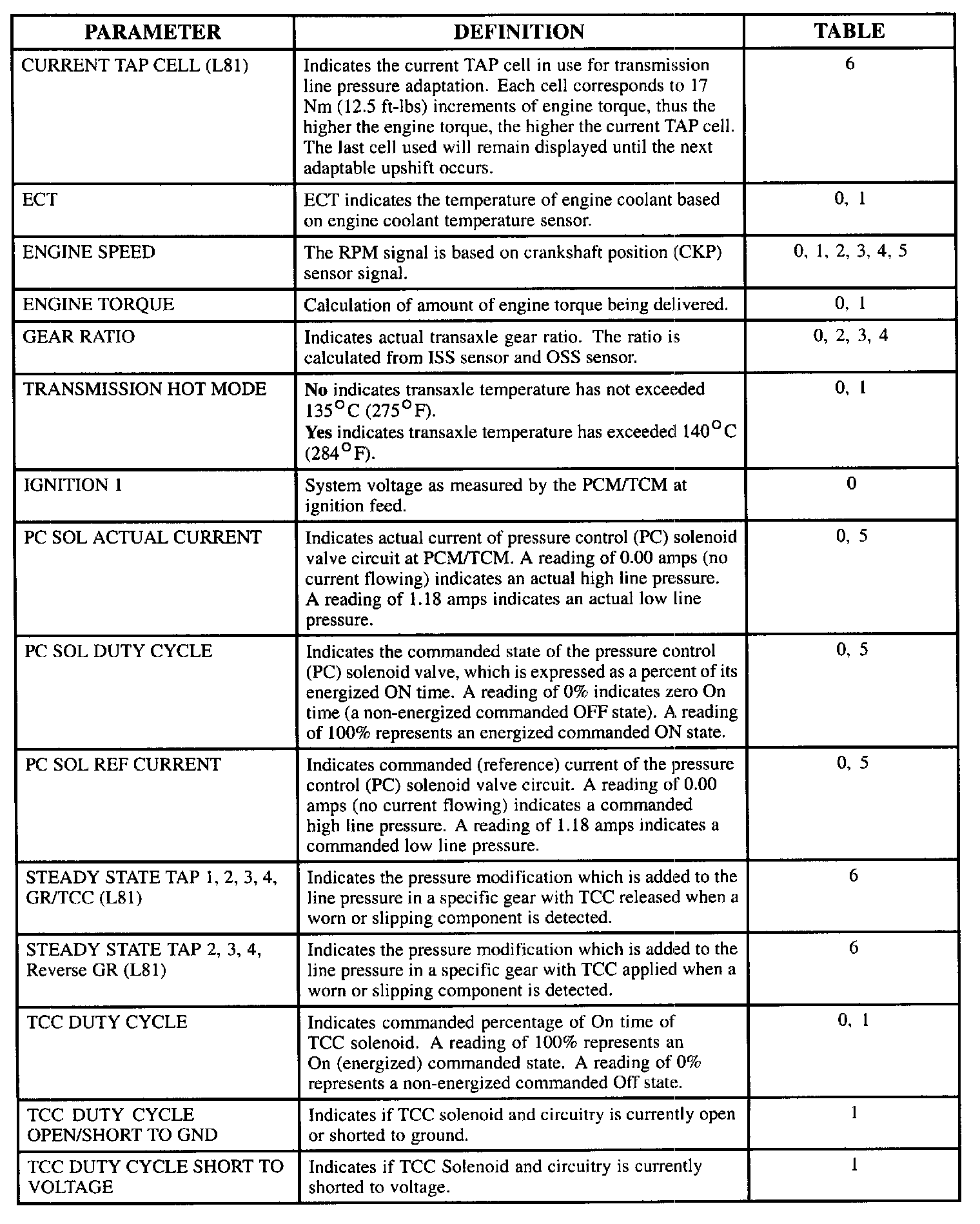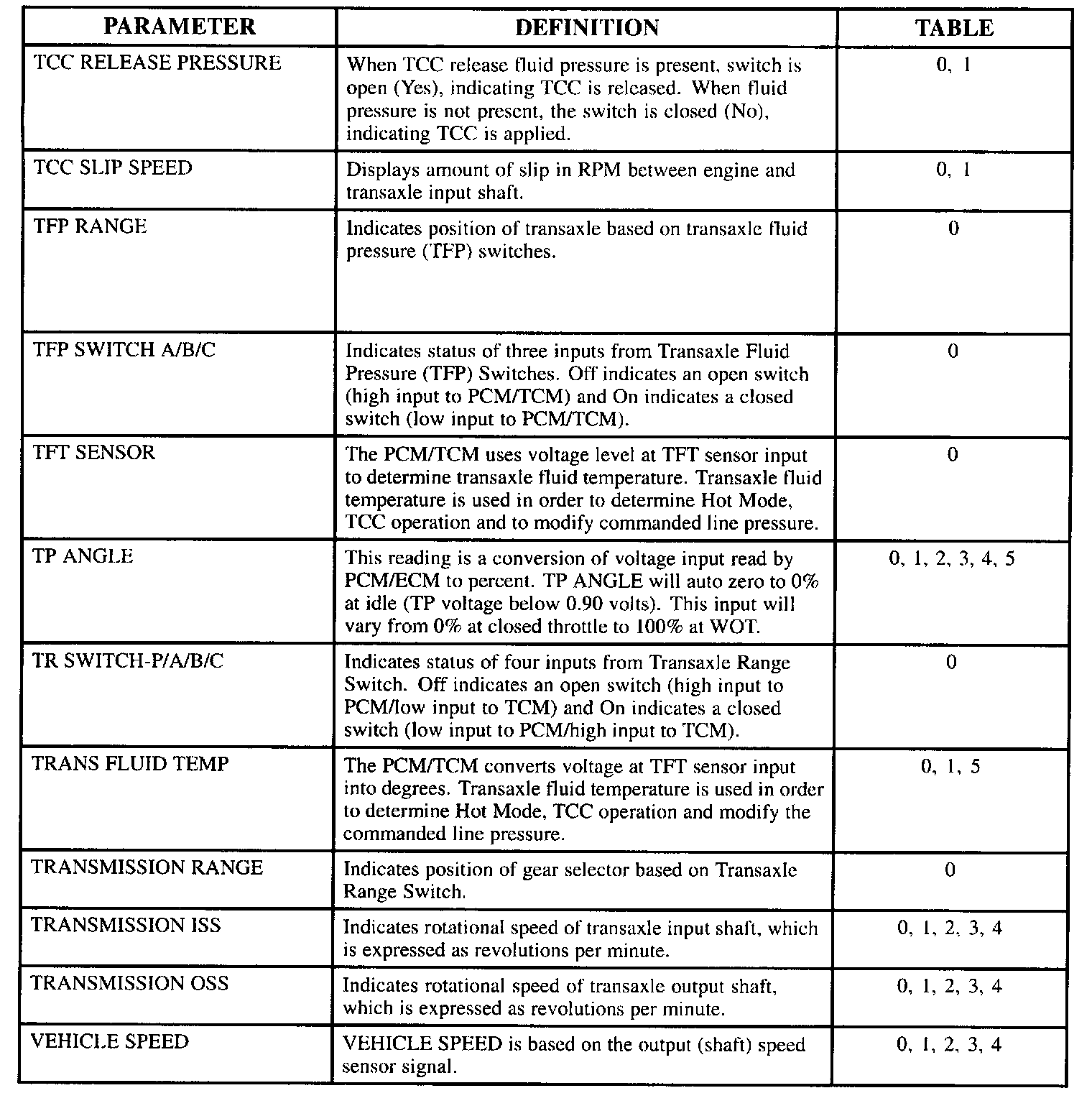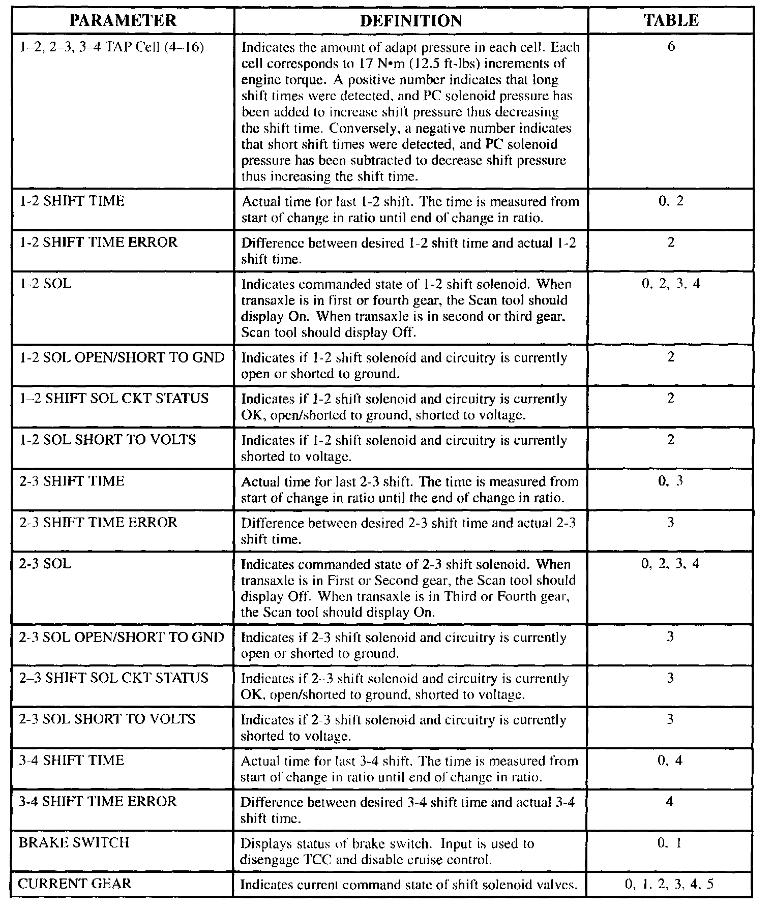 SCAN TOOL DATA DEFINITIONS FOR TRANSMISSION DATA