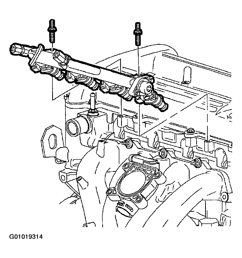 - Install fuel rail attaching bolts. Tighten fuel rail attaching bolts to 10 N.m (89 in-lbs).