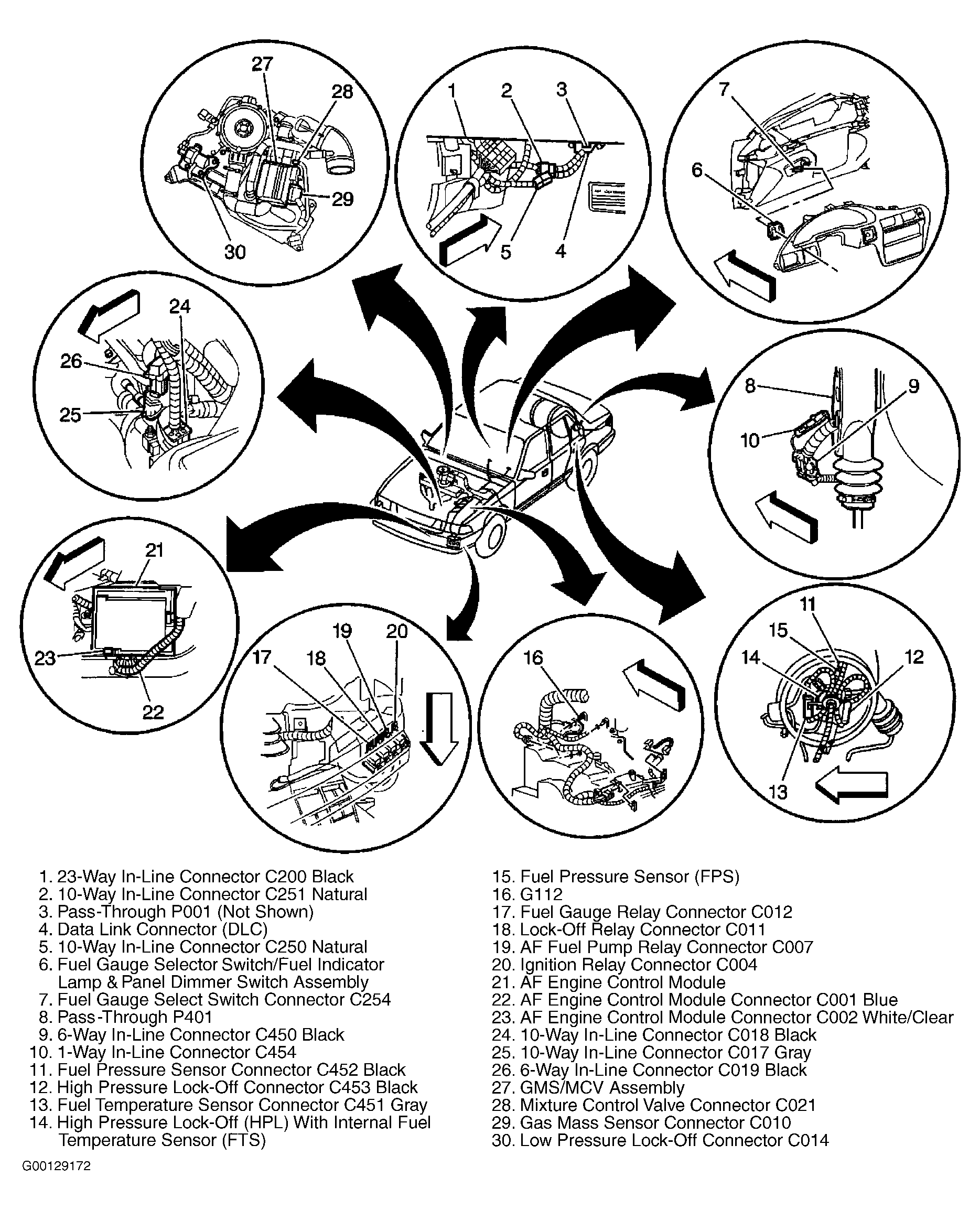 - Alternative Fuel Engine Control Module (AF ECM), also referred to as Alternative Fuel Engine Control Unit (AF ECU), is located behind left front headlight. See Fig 1. Disconnect negative battery cable. Remove front fender liner as required to access bolts from front fascia to fender. Remove front fascia to fender bolts. Remove push-in retainers from top and center of fascia. Remove push-in retainers from bottom of fascia. Remove front bumper fascia from vehicle.